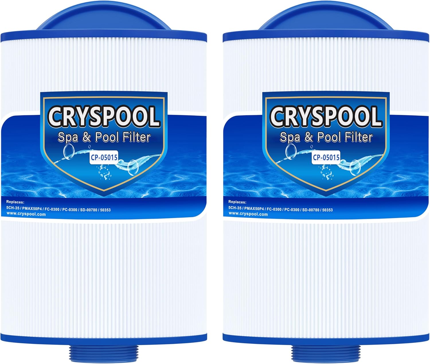 Cryspool® 05015 Spa Filter Compatible with 5CH-35, PMAX50P4, PAS35P, Maax 104309, FC-0300, 35 Sq. Ft hot tub Filter Cartridge, 1 1/2" MPT, 2 Pack