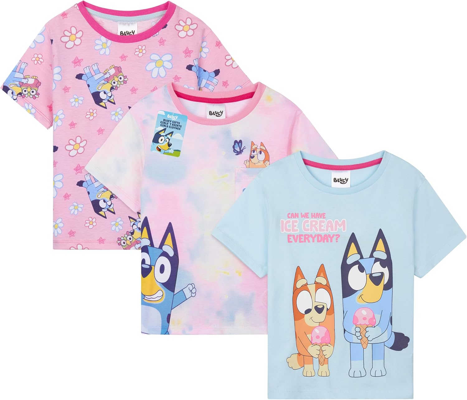 Get Trend T Shirts for Girls Pack of 3 Soft Breathable Short Sleeve Casual T Shirt Summer Holiday Girls Clothes Tees Gifts