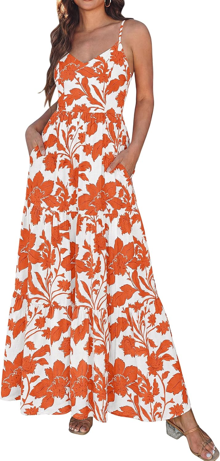 KIRUNDO Maxi Dresses for Women Summer Boho Floral Beach Vacation Sundress Spring Wedding Guest Dress Flowy Cruise Resort Wear