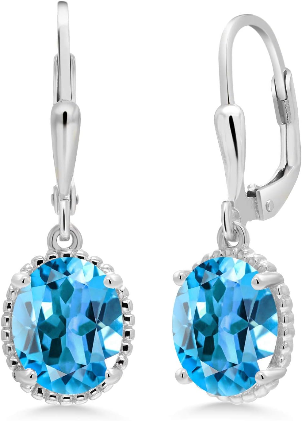 Gem Stone King Leverback Drop Dangle Earrings For Women | 925 Sterling Silver | 9X7MM Oval Gemstone Birthstone | Fine Jewelry Gifts for Her Mom Women Wife