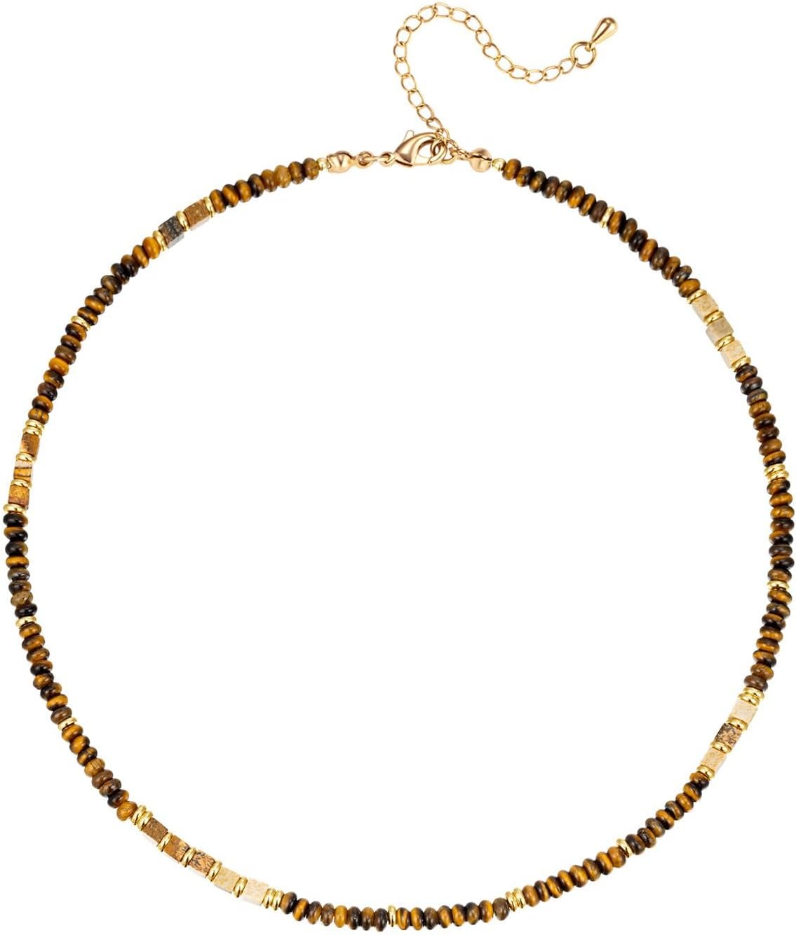 Beaded Necklace for Women Boho Beach Beaded Choker Natural Stone Brown Tiger Eye Necklace Jewelry Gift