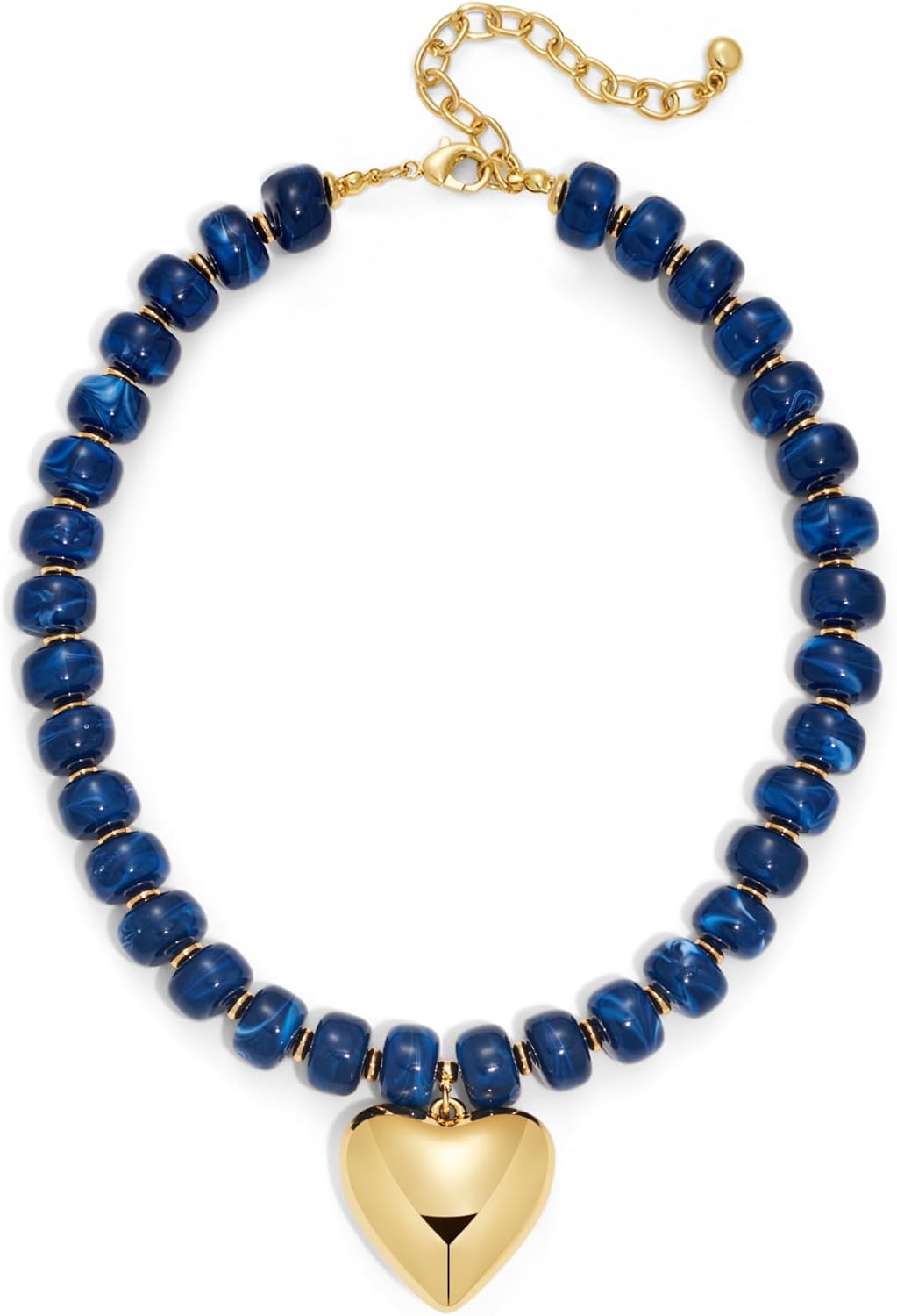 Gold Heart Pendant Necklaces for Women Colorful Acrylic Resin Beaded Choker Necklace Fashion Chunky Statement Beaded Heart Necklace