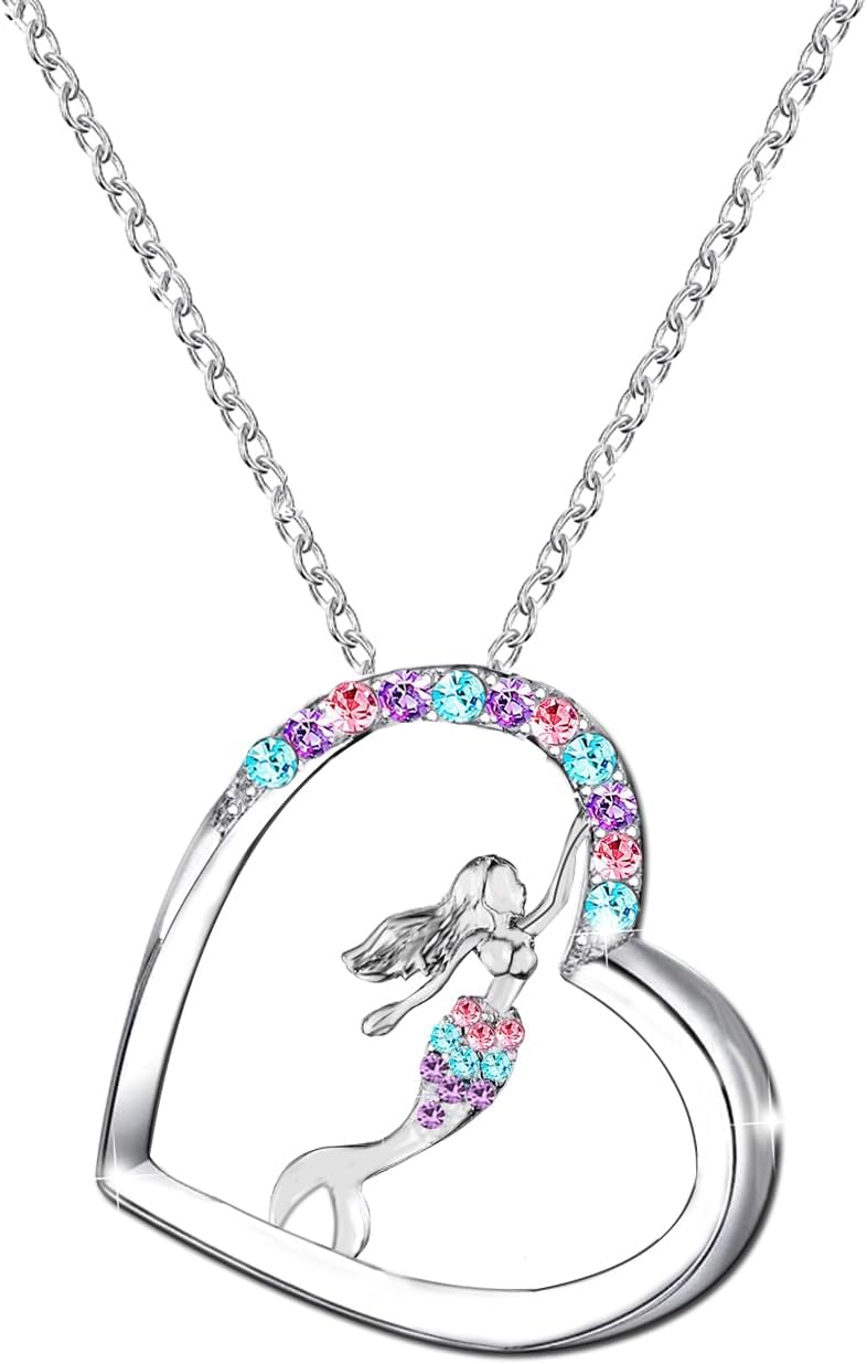 M&Ostyle Mermaid Necklace for Girls Boys Crystal Heart Pendant Necklaces Gifts Jewelry Gifts for Girls Daughter Boys Son Granddaughter Niece Birthday Christmas Graduation Gift