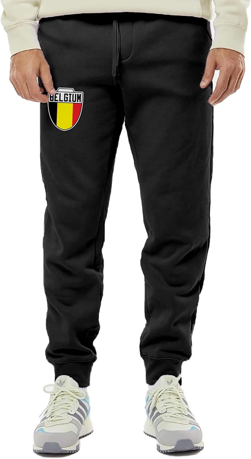 Belgium Crest - Belgian National Soccer Cup Unisex Drawstring Fleece Jogger Pants (X-Small, Black)