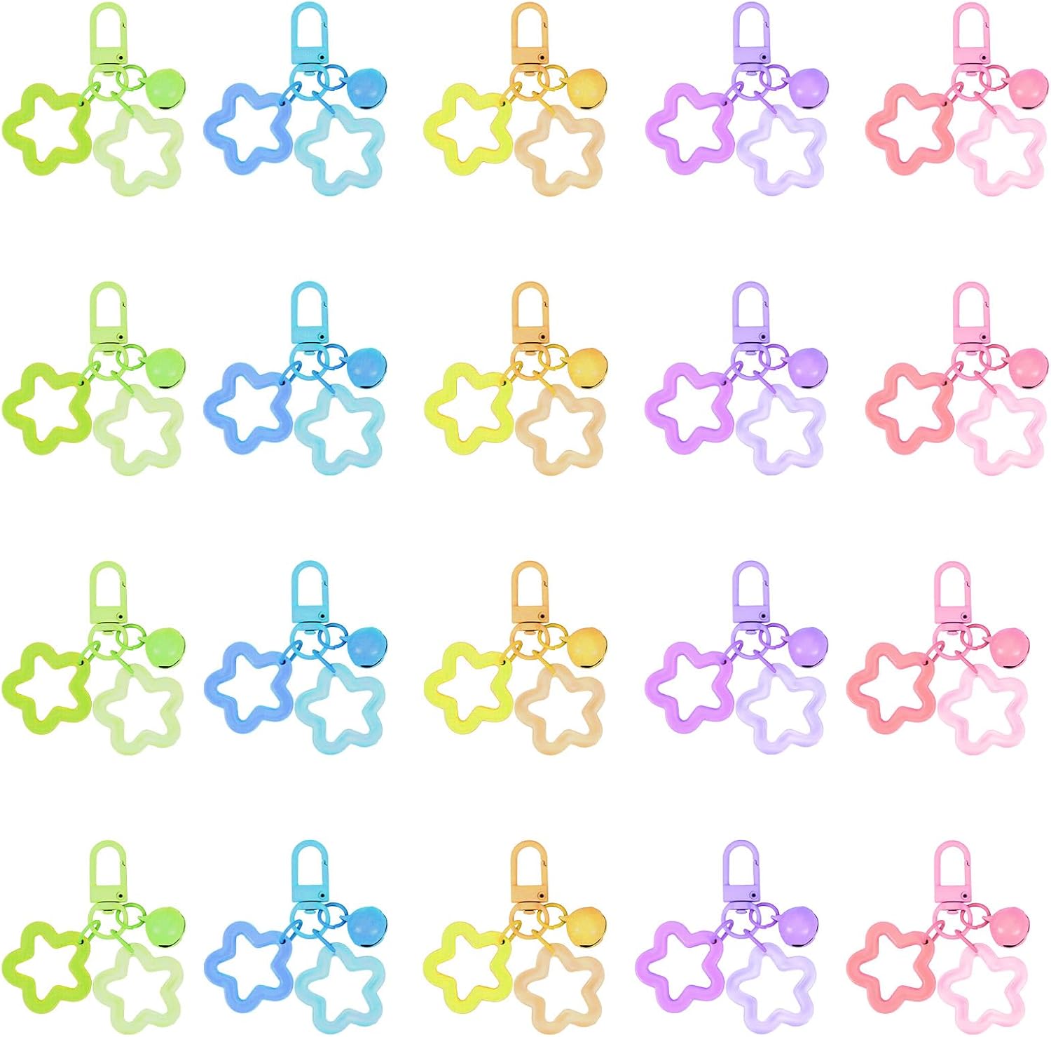 20 Pcs Star Keychain, 5 Colors Acrylic Star Keychain with Bell Metal Lobster Candy Color Stars Keyring Cute Stars Bag Charm for Women Car Keys Backpack Keychains Purse Bag DIY Gift