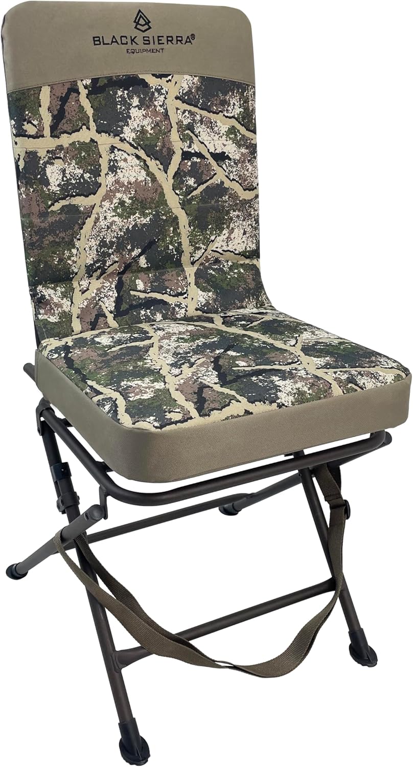 Black Sierra Padded Swivel Hunting Chair - 360 Silent, Heavy Duty, Supports 300 Lbs (Ranger Camo)