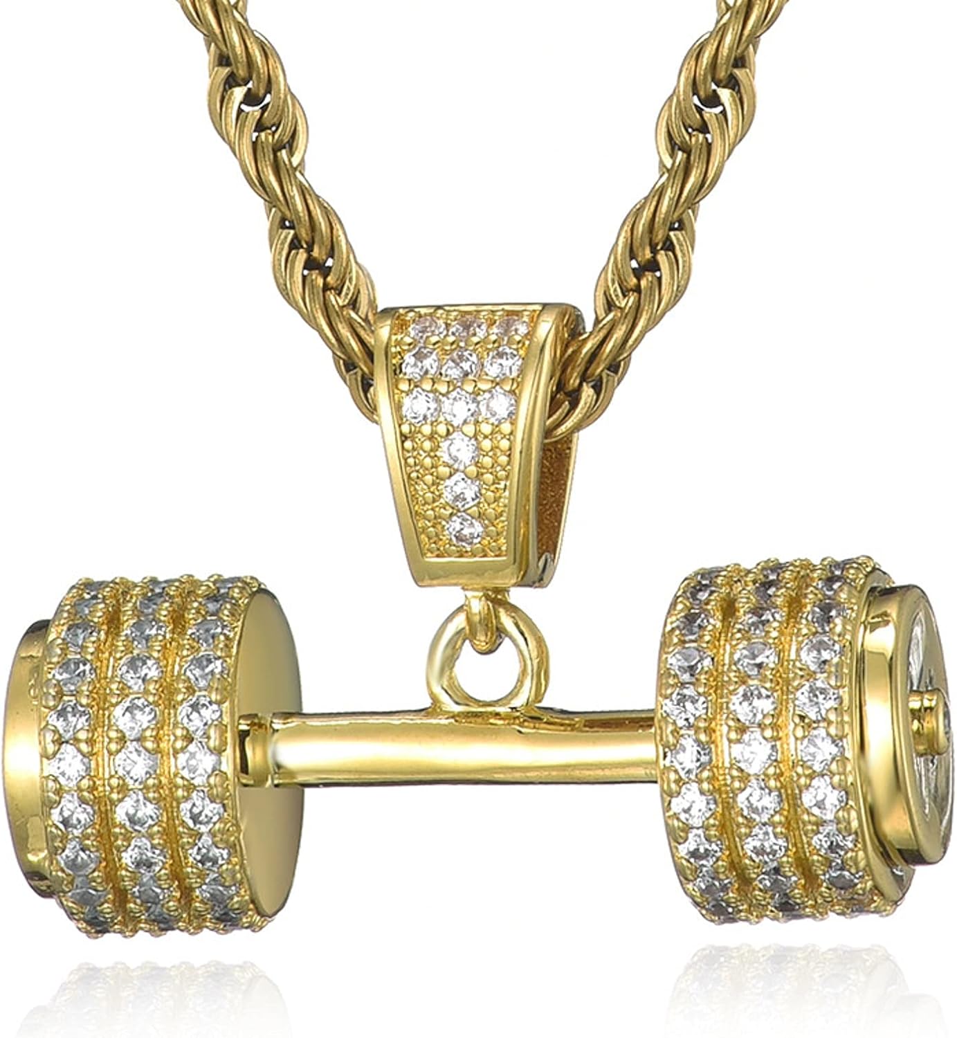 ASkinds Diamond Dumbbell Necklace Crystal Barbell Pendant Necklace Fitness Gym Weight Lifting Necklace for Men Women(Gold)