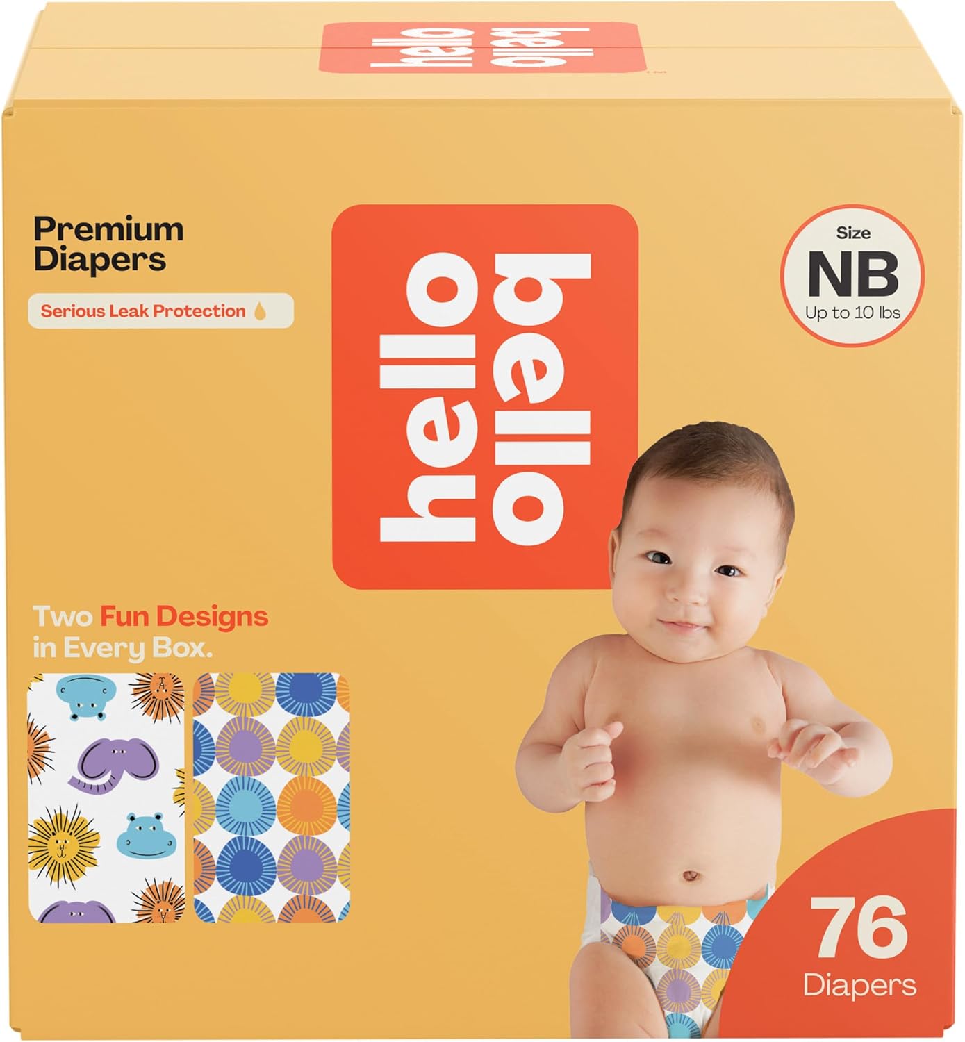 Hello Bello Premium Diapers Size NB, Safari Squad & Shine and Dandy Designs, 76ct Club Box