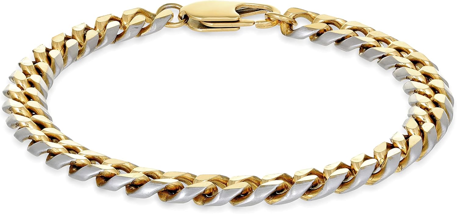 Metro Jewelry Two Tone Curb Chain Bracelet for Men in Stainless Steel with Yellow Gold Ion Plating - 8.5 Inches Long 8 mm Wide with Lobster Claw