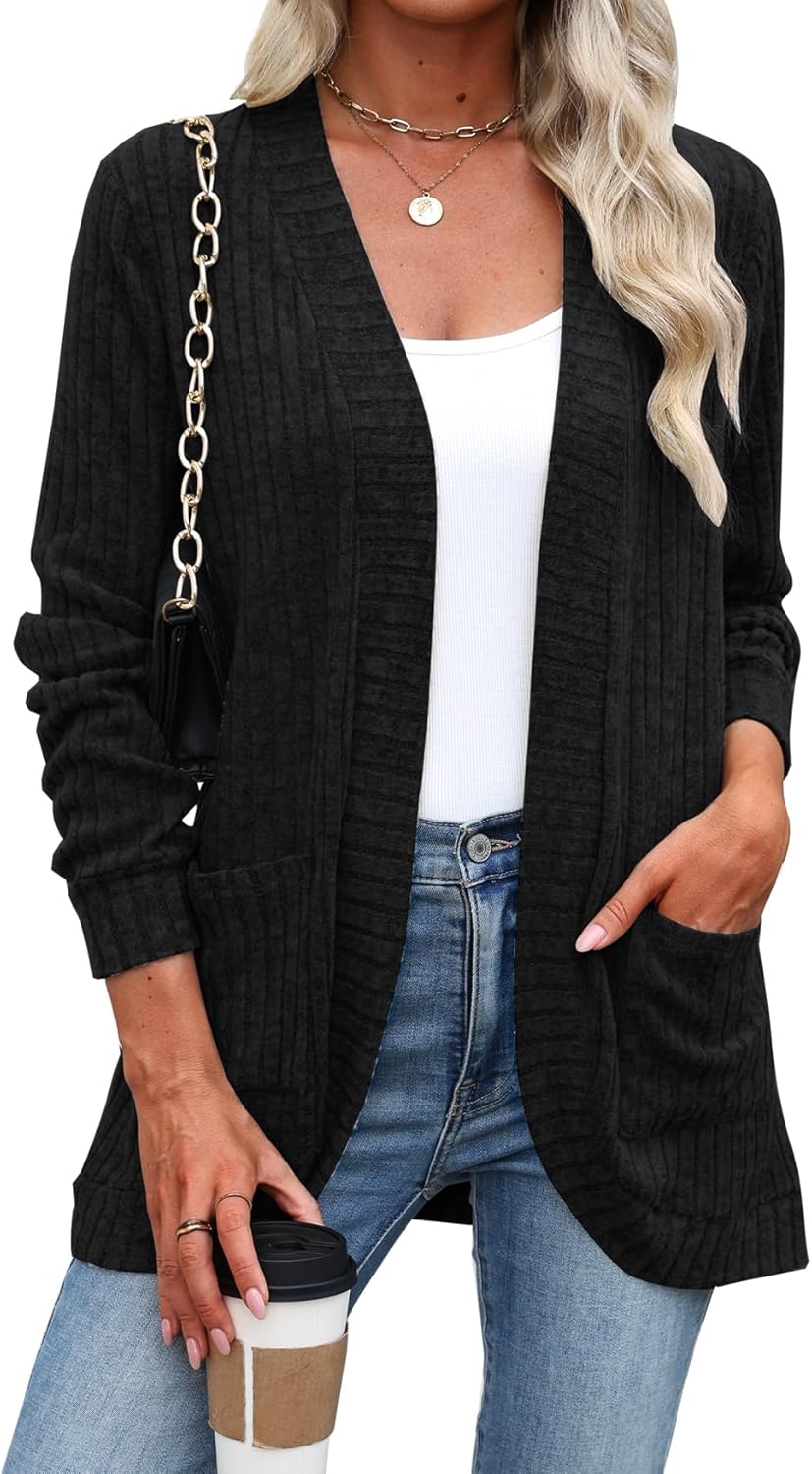 Halife Women's Fashion Cardigan Sweaters Lightweight Open Front Long Sleeve Casual Thin Cardigans with Pockets