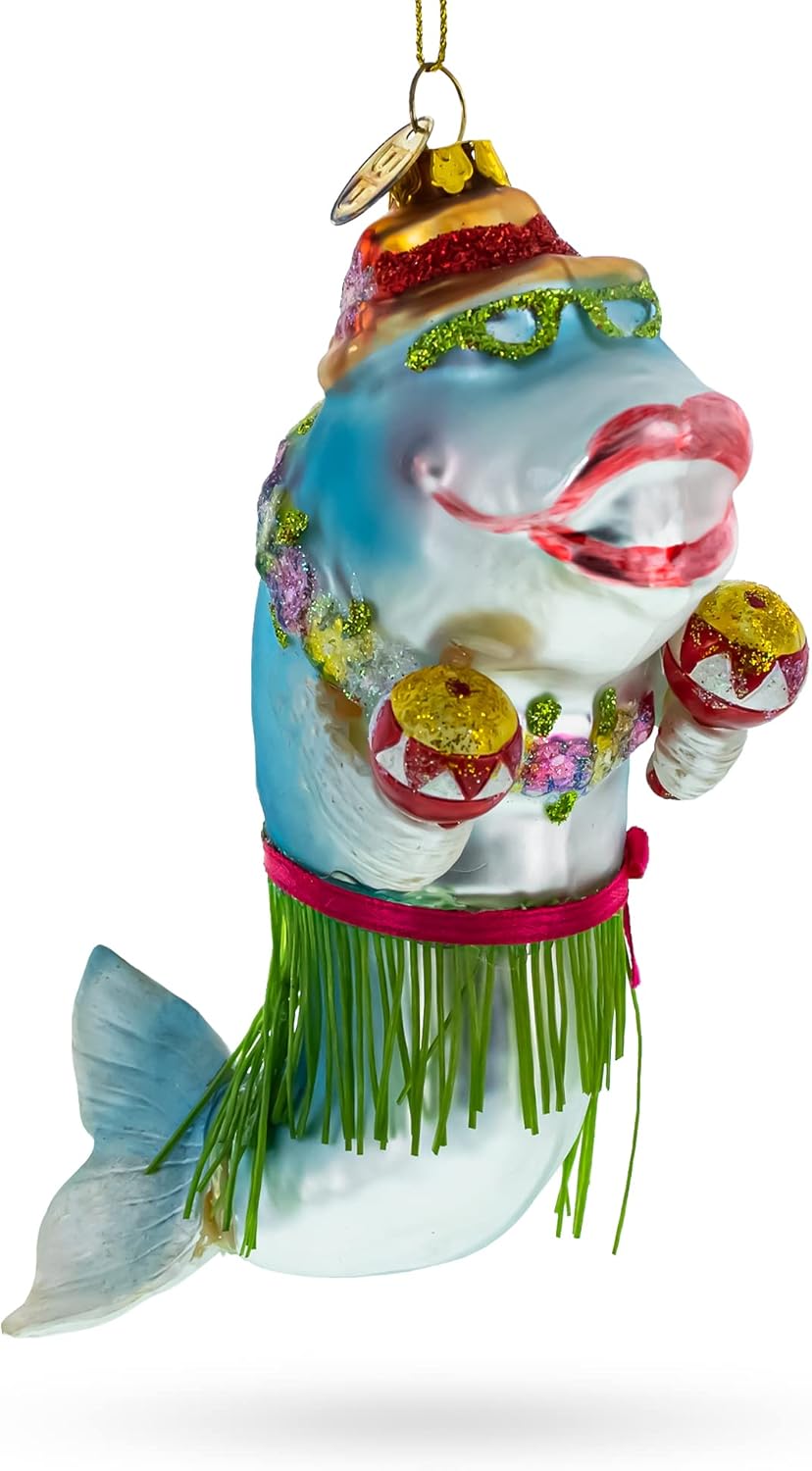 Festive Hawaiian Shark with Maracas Glass Christmas Ornament