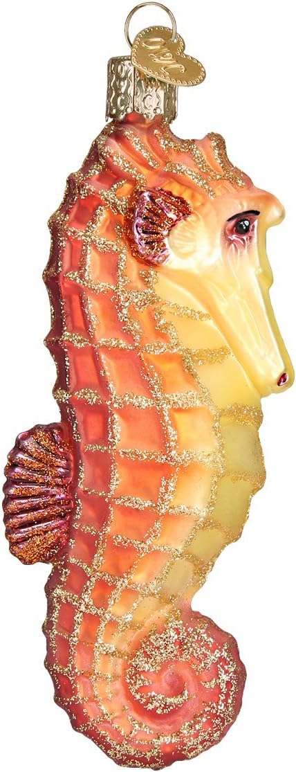 Old World Christmas Ornaments Orange Sea Horse Glass Blown Ornaments for Christmas Tree