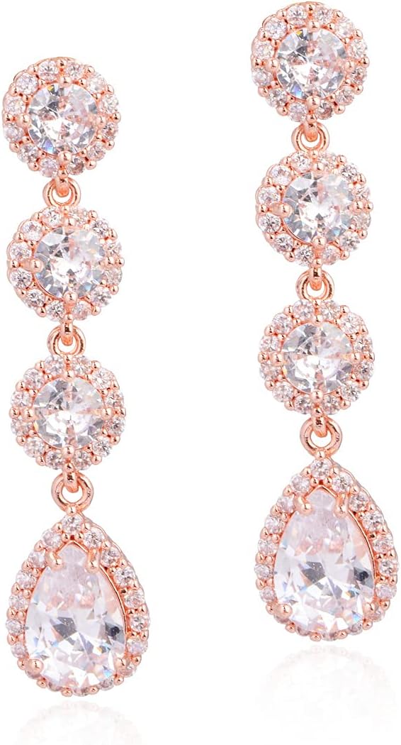 Women's Cubic Zirconia Bridal Earrings - Elegant Long Wedding Party Prom Earring for Bride Bridesmaids Crystal CZ Rhinestone Chandelier Statement Dangle Drop Earrings for girls