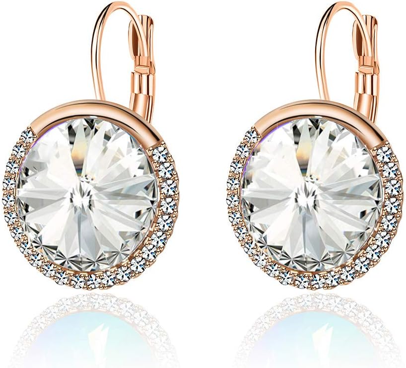 Round Austrian Crystal Halo Drop Leverback Earrings for Women 14K Gold Plated Hypoallergenic Earrings