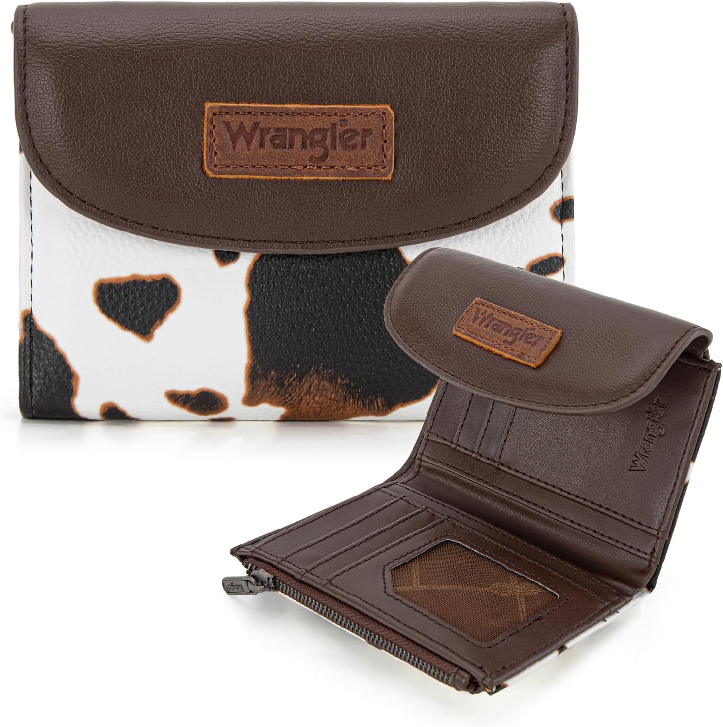 Montana West X Wrangler Small Wallet for Women Cow Print Wallets, Card Cases & Money Organizers Slim Trifold Clutch Wallet large Capacity Credit Card Cash Wallets Ladies Female with Coin Purses