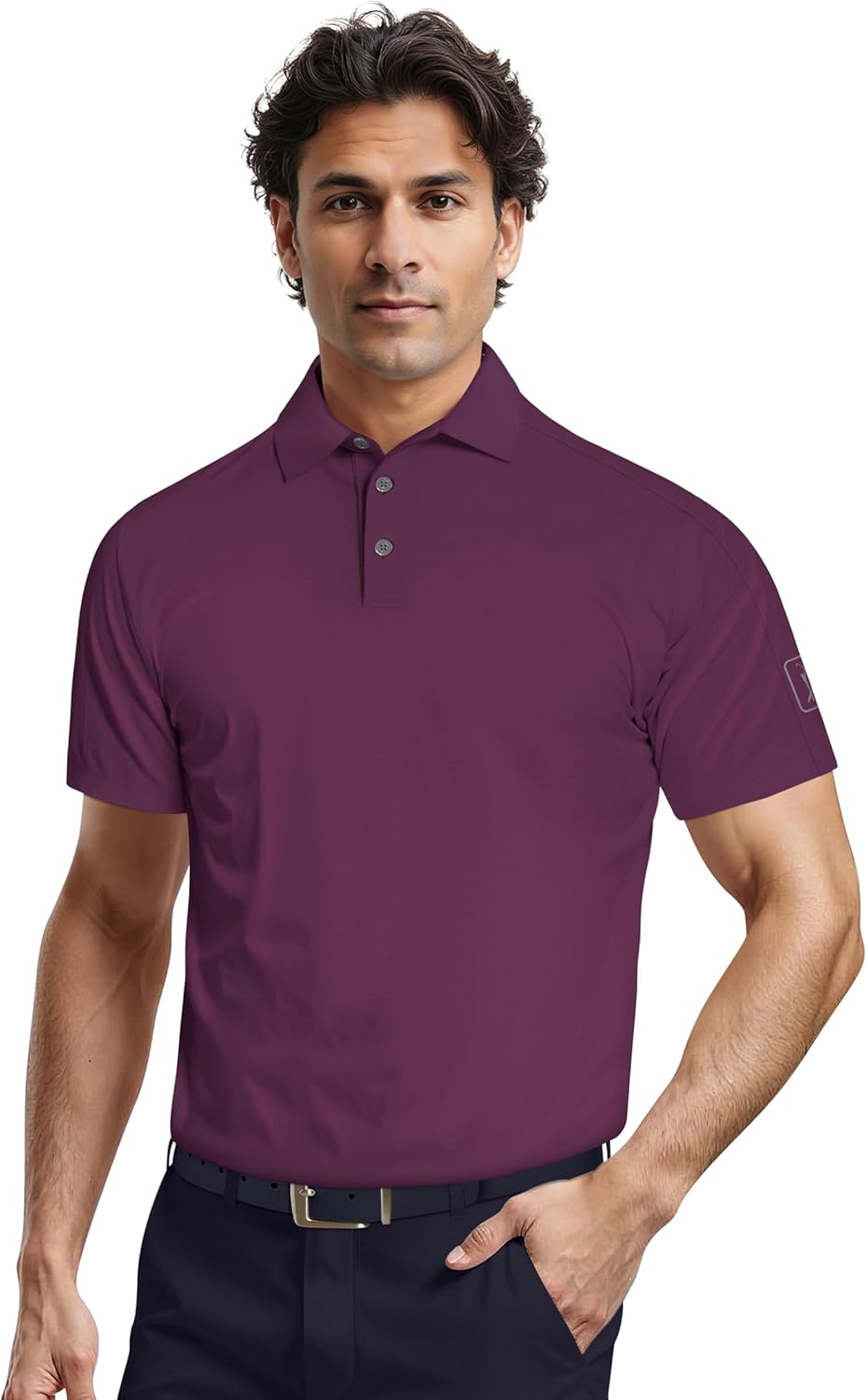 PGA Tour Mens Solid Cooling Texture Short Sleeve Golf Polo Shirt