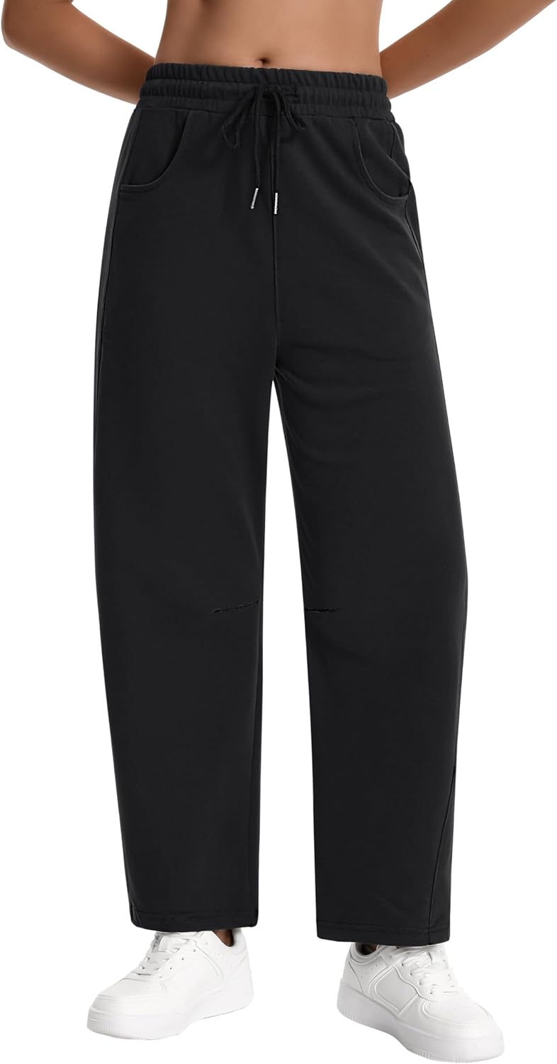Auriviz Womens Barrel Sweatpants Drawstring High Waisted Wide Leg Pants Baggy Casual Workout Sweat Pants Pockets 28‘’ Inseam