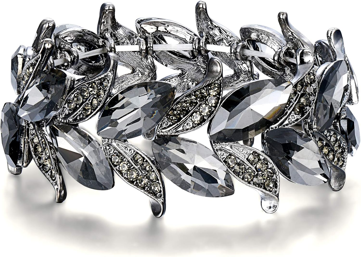 BriLove Women's Wedding Bridal Crystal Marquise-Shape Leaf Stretch Bangle Bracelet