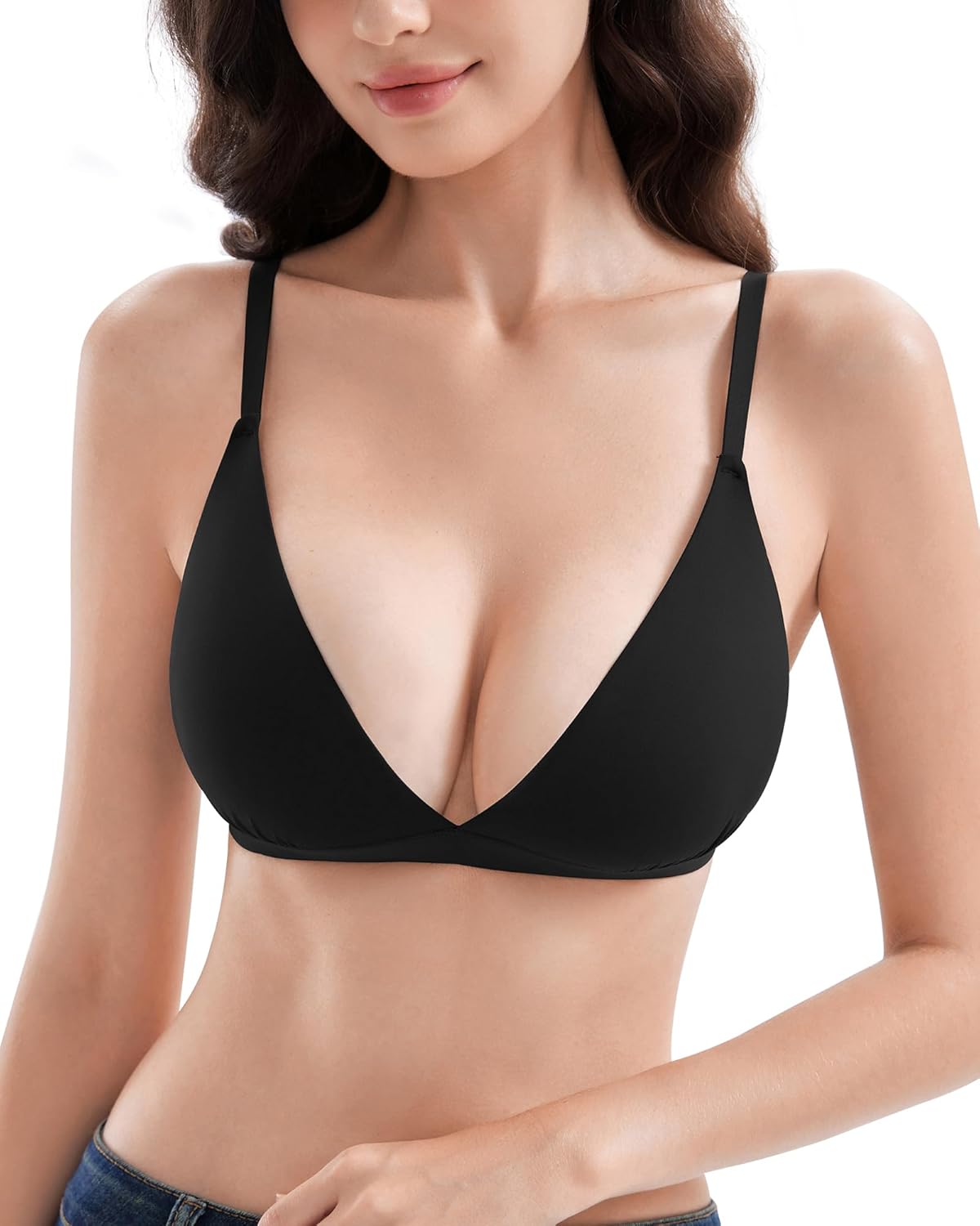 Women's Comfy Wireless Triangle Bralette, Sexy Plunge Unlined Seamless Everyday Bras No Underwire Pull-On T-Shirt Bra