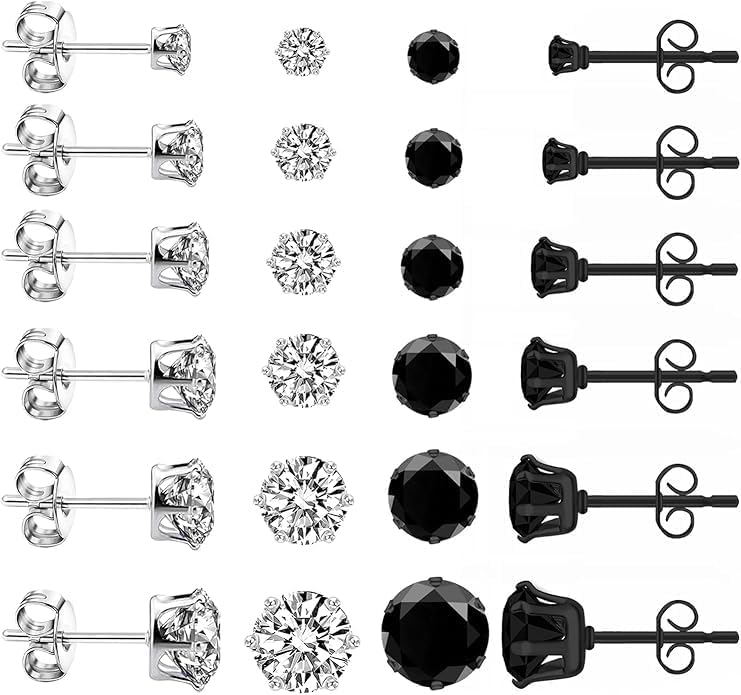 Stud Earrings Set LUCKYPADS 12 Pairs Stud Earrings for Women Hypoallergenic Stainless Steel Stud Earrings Pack Men Earrings Stud with Cubic Zirconia