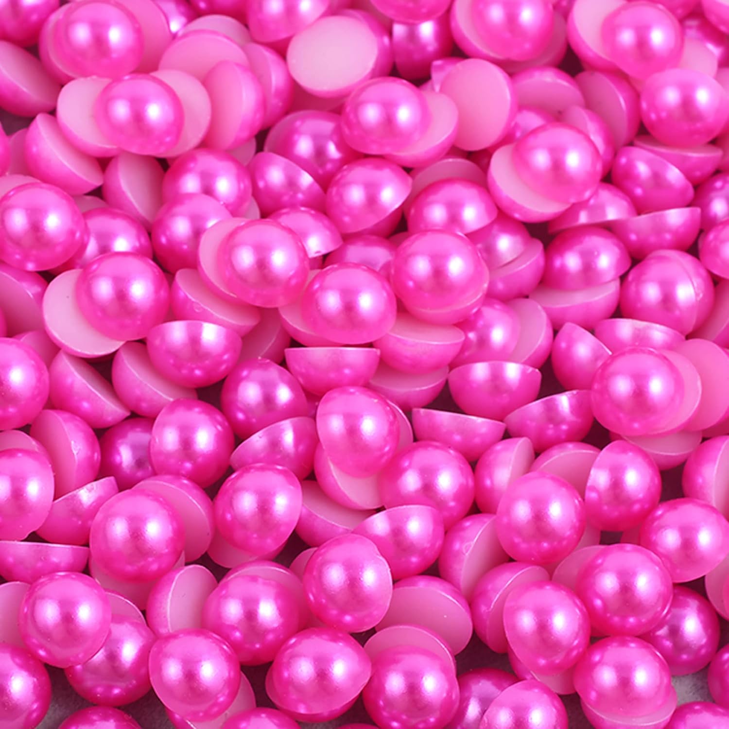 1200PCS Hot Pink Flat Back Pearls Gems, Mixed Size 2/4/6/8/10/12/14mm Half Round Pearls Beads for Crafts, Hair, Shoes, Nail Art Decorations