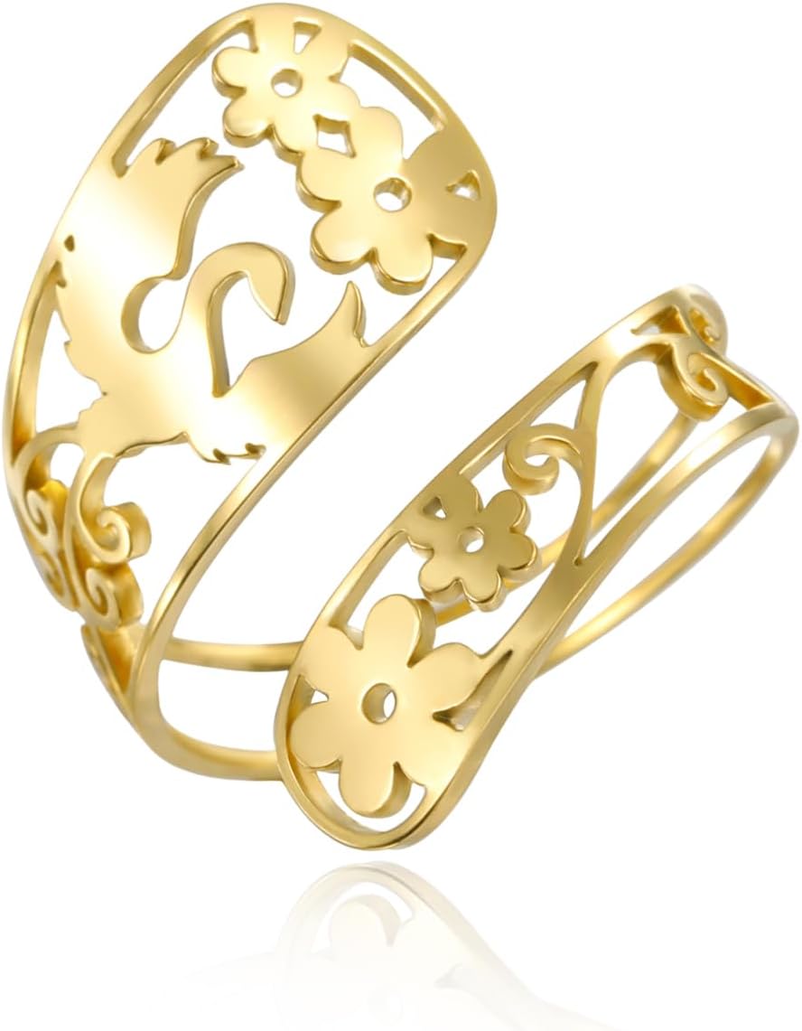 VASSAGO Spoon Rings for Women Stainless Steel Phoenix Ring Adjustable Hollow Flower Ring Stackable Finger Jewelry