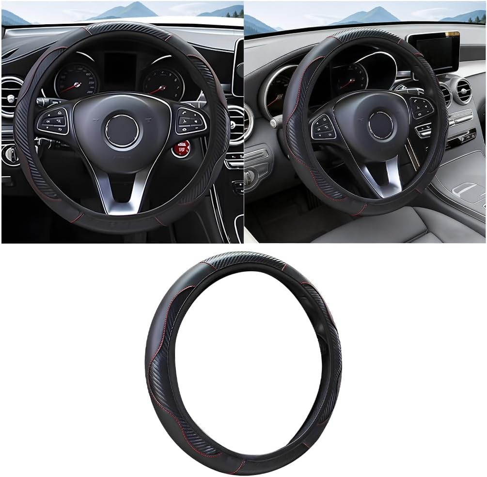 - Package Contents: Packaged in a pouch, each set contains one carbon fibre-textured leather steering wheel cover. This single-item kit is ideal for: new car owners seeking steering wheel protection, users replacing worn covers, or automotive enthusiasts desiring a sportier cabin ambience. It efficiently enhances both vehicle safety and aesthetic appeal.