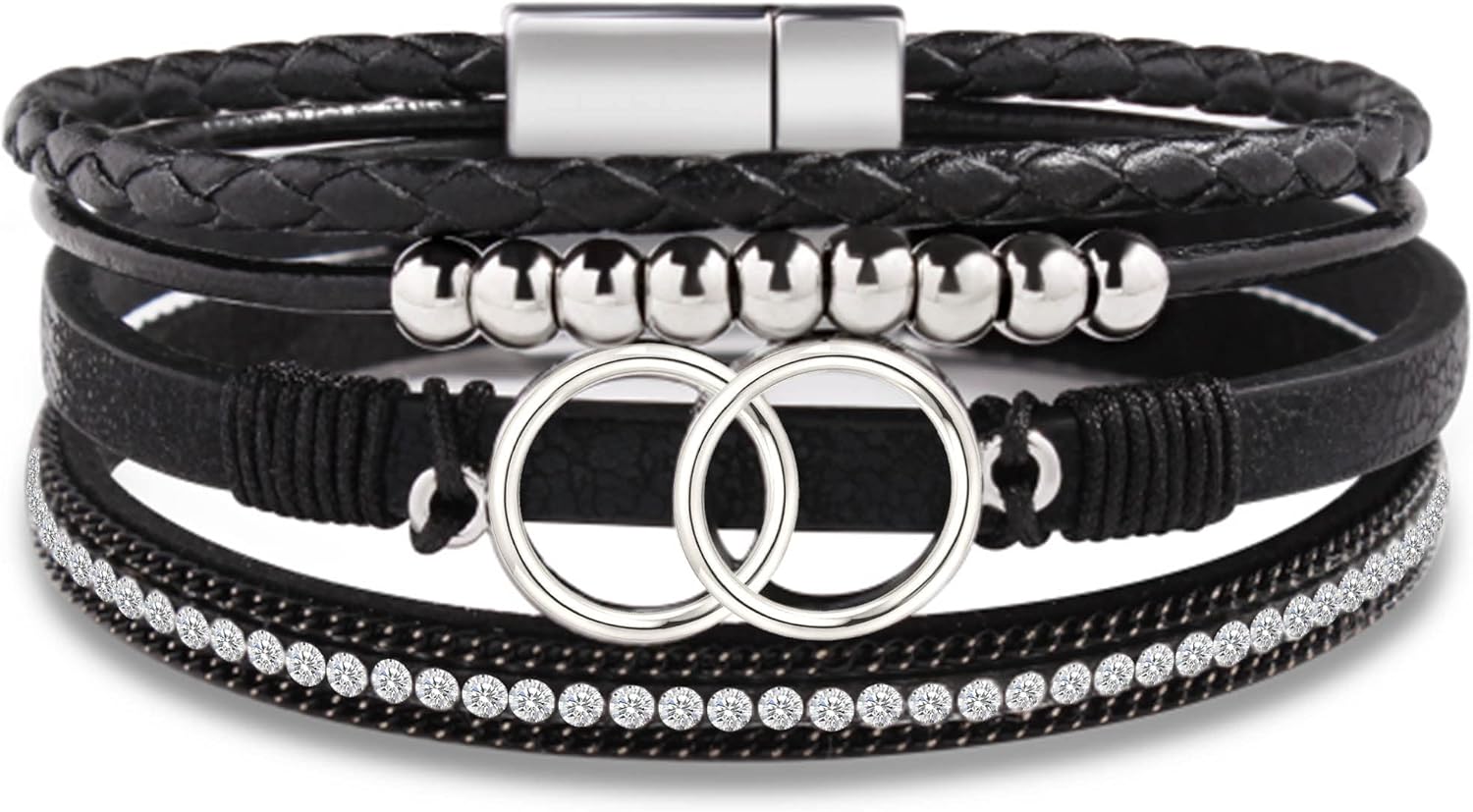 Bracelets for Women,Valentines Day Gifts for Her Teens Leather Bracelets for Women Mothers Day Gifts for Mom Birthday Gift Inspirational Gift for Daughter Wrap Bracelet Sister Friend Teen Girl Gift Layered Christmas Jewelry