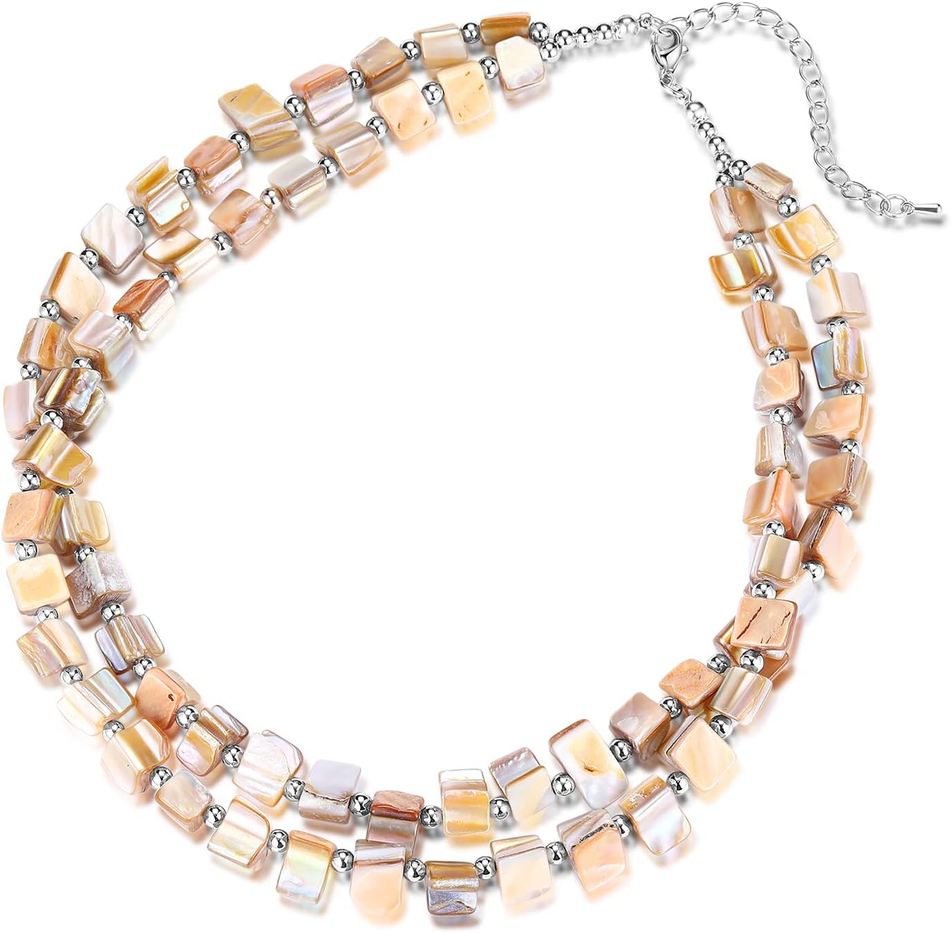 BULINLIN Boho Layered Shell Beaded Necklaces Handmade Colored Bead Choker Necklace Holiday Style Costume Jewelry for Women