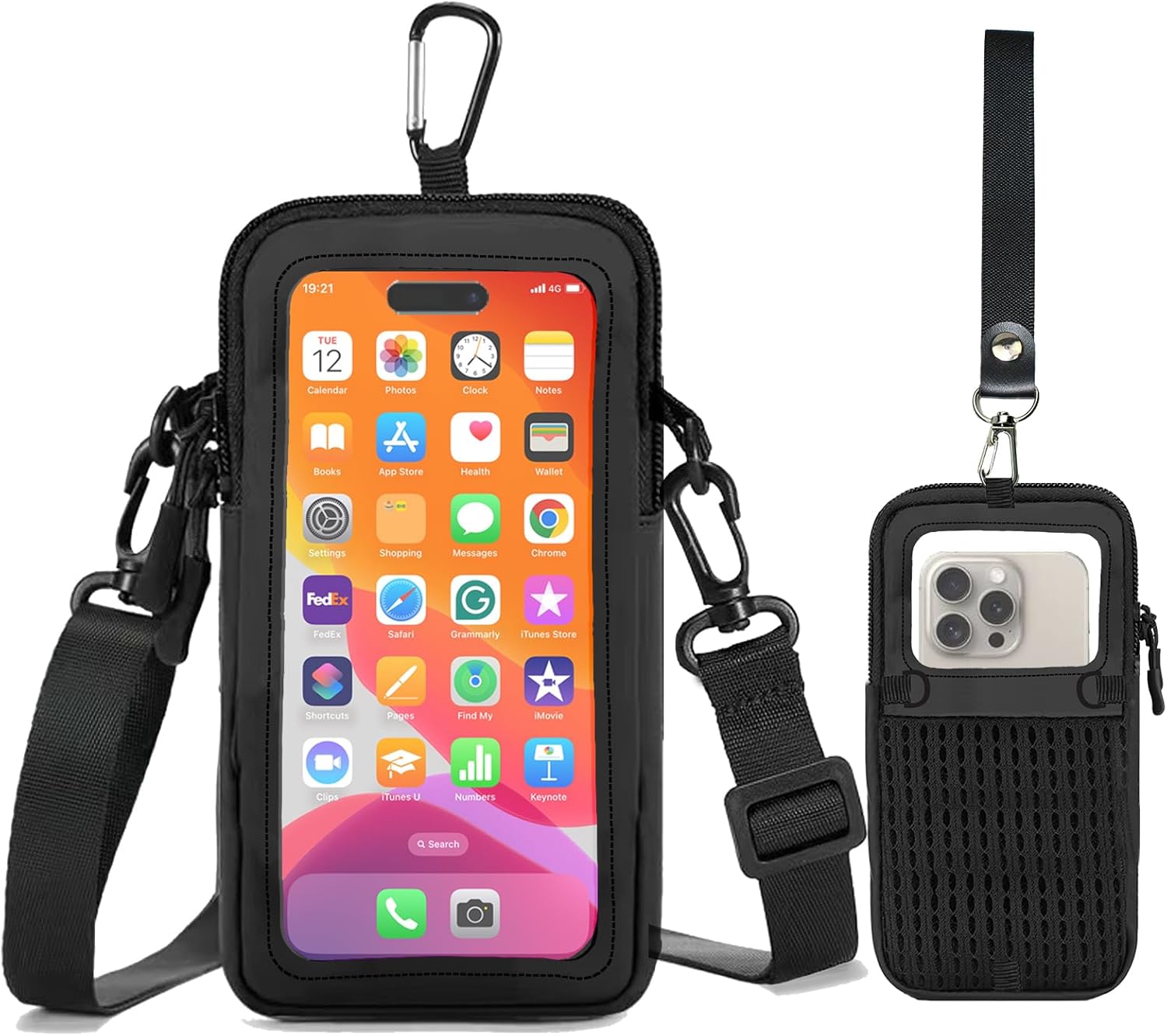 Clear Phone Purse Crossbody with Adjustable Strap, Cell Phone Pouch Around The Neck, Shoulder Holster with Wrist Strap, Small Crossbody Bags for Women Man Girl Boy