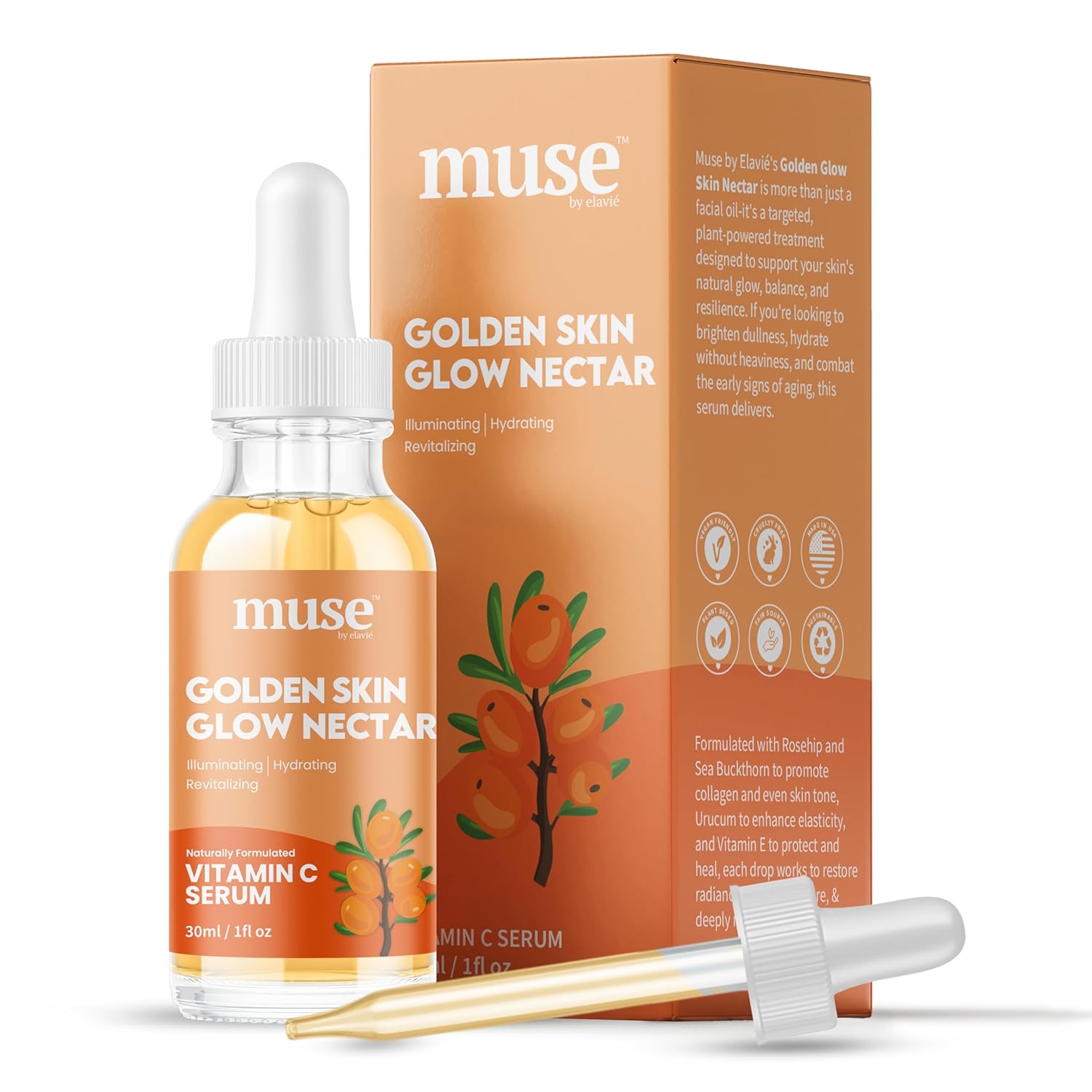 Muse by Elavié's - Golden Glow Skin Nectar, Naturally Enriched Vitamin C Serum, Antioxidant-Rich Face Oil with Rosehip, Sea Buckthorn & Urucum, Hydrating & Anti-Aging Botanical Elixir, 1oz