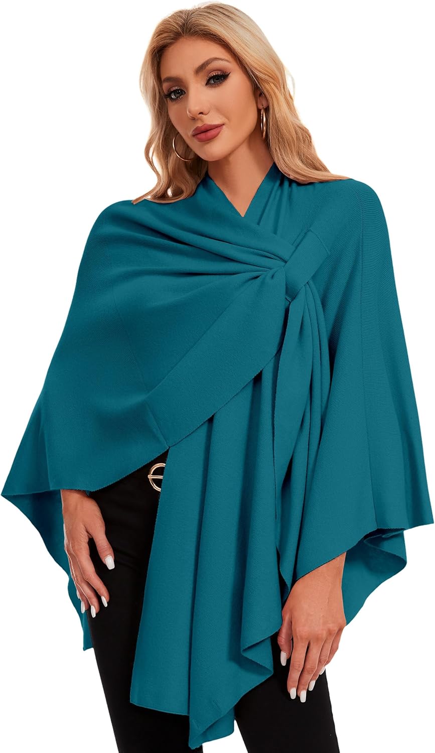PULI Womens Elegant Cross Front Shawl Wraps Knitted Ponchos Cape Light Weight Poncho Sweater Soft Warm Travel Wraps
