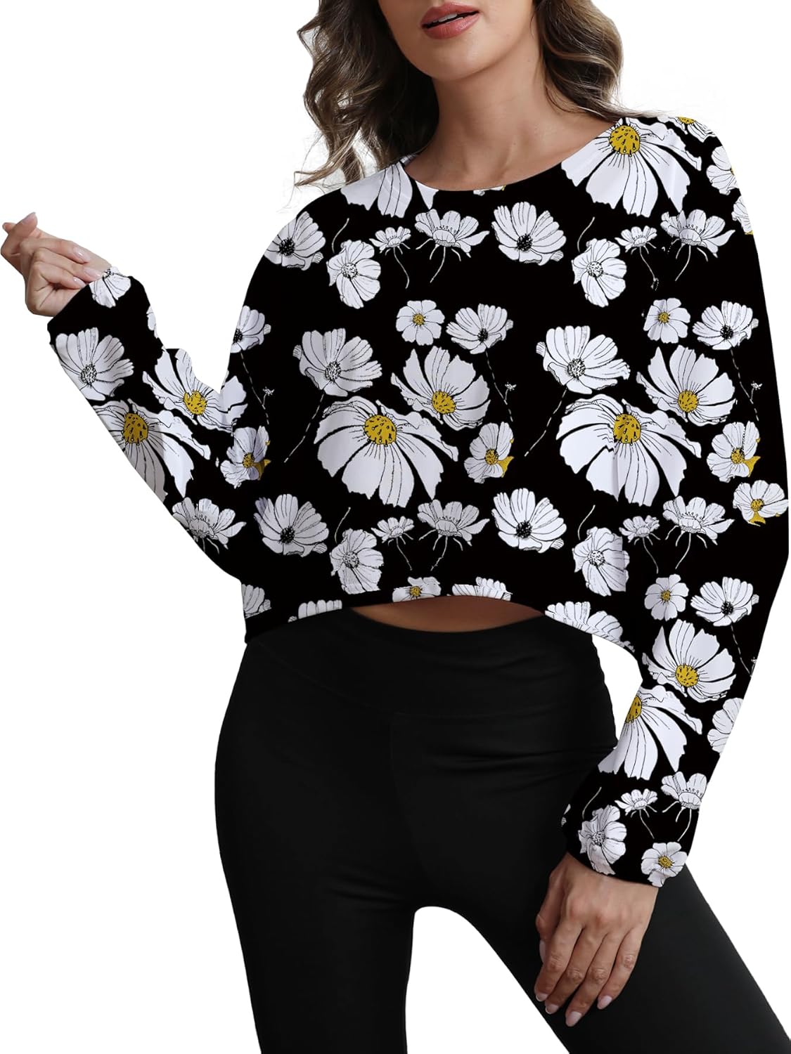 Womens Workout Tops Casual Sweatshirt Long Sleeve Cropped t Shirts Crewneck Loose Fit Clothing for Women Trendy