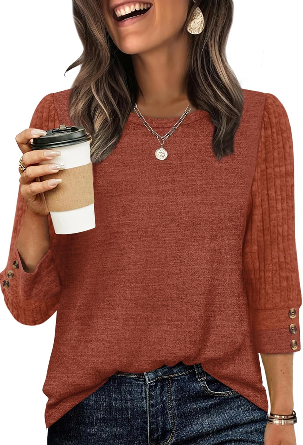 WIHOLL 3/4 Length Sleeve Womens Tops Sweaters Shirts Lightweight Spring Outfits 2026 Winter Clothing S-3XL