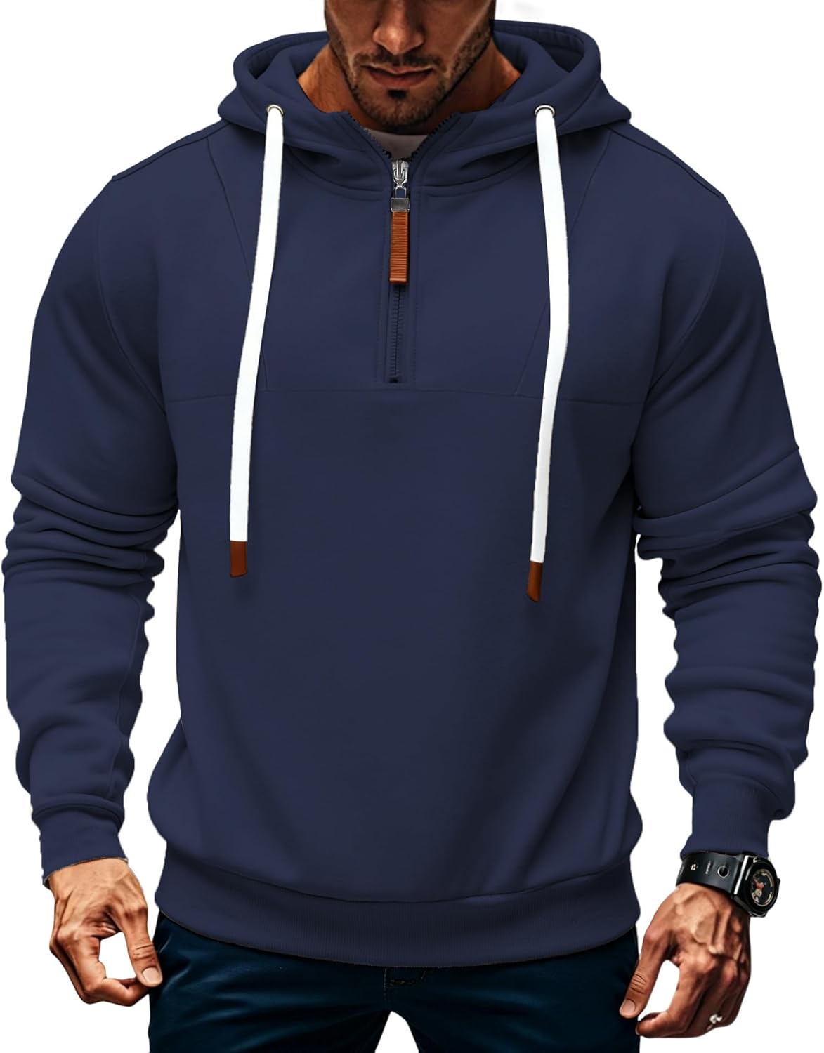 Mens Quarter Zip Hoodie Sweatshirt Warm Fleece Long Sleeve Pullover Hoodies for Men