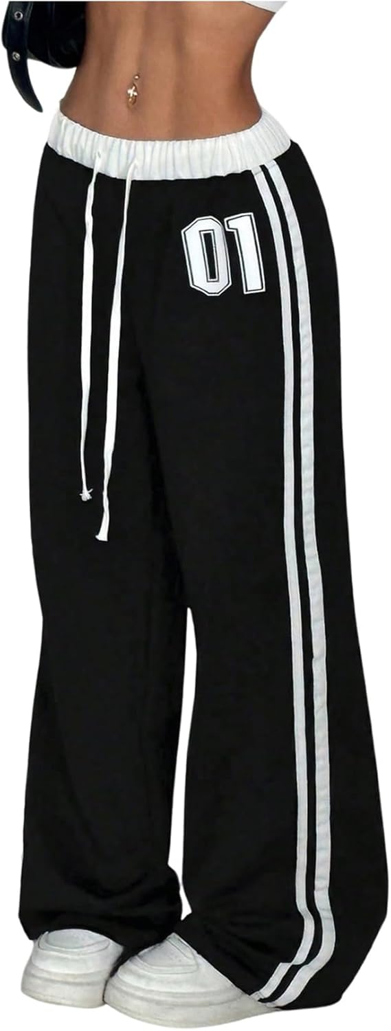 SOLY HUX Women's Baggy Sweatpants Wide Leg Ed Hardy Sweatpant Y2k Drawstring Pants Streetwear