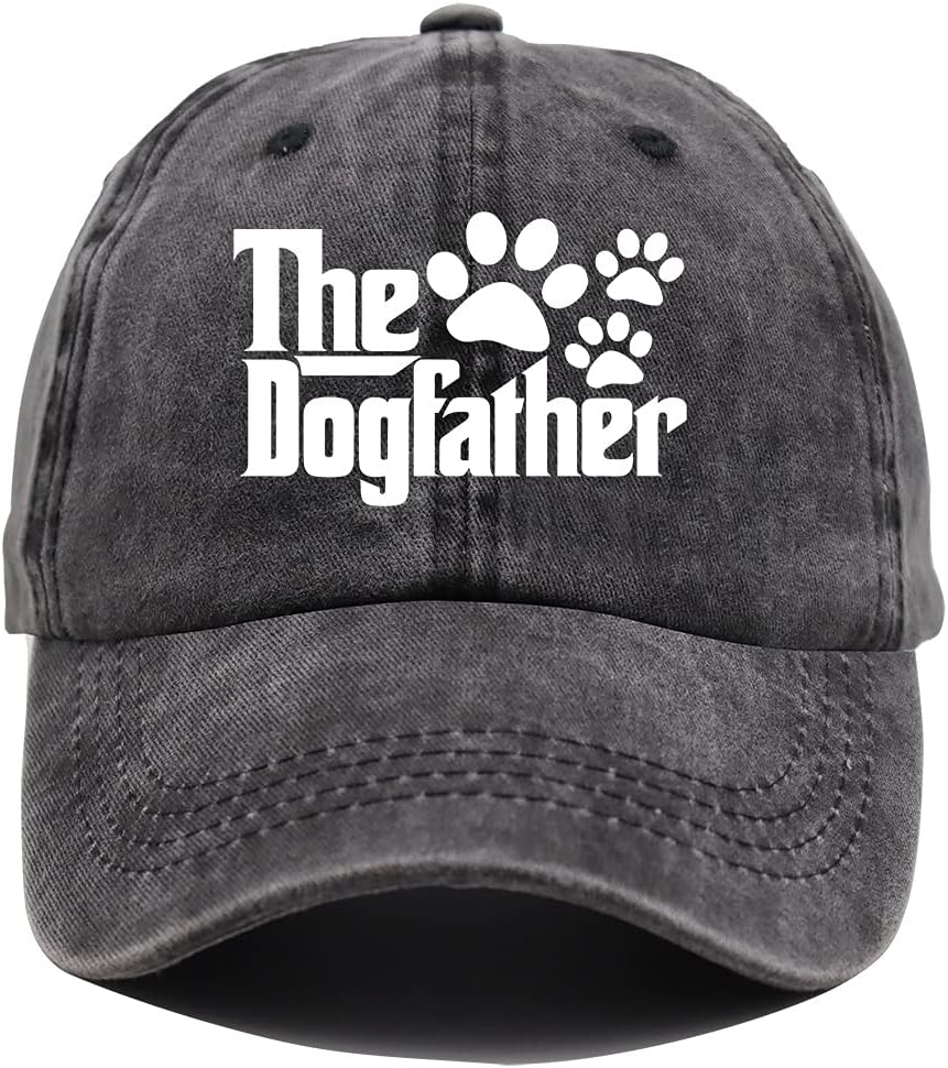 The Dogfather Paw Hat, Best Dog Dad Hats, Father's Day Adjustable Washed Denim Baseball Cap for Men