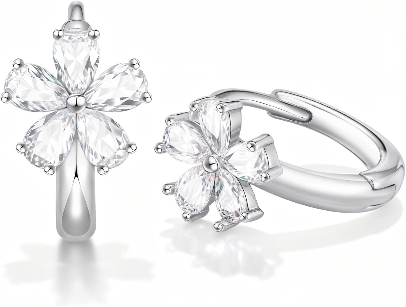 S925 Sterling Silver Small Earrings for Women - Silver Hoop Earrings for Women Jewelry Hypoallergenic Stud Earrings Flower Earrings Cubic Zirconia Earrings Wedding Bride Birthday Gift