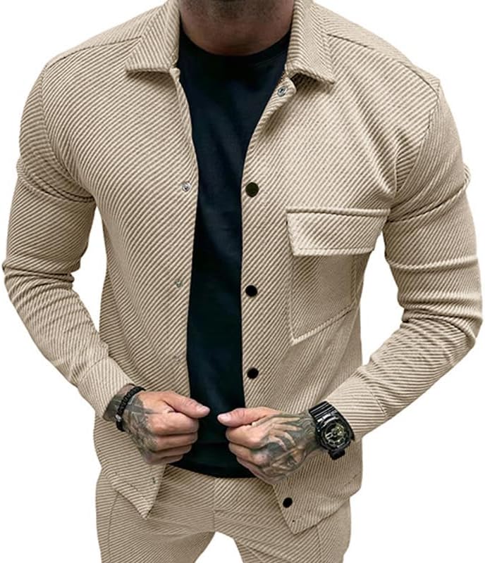Men's Slim Fit Jacket Spring Autumn Solid Twill Button Front Casual Top with Pockets for Holidays Daily Wear