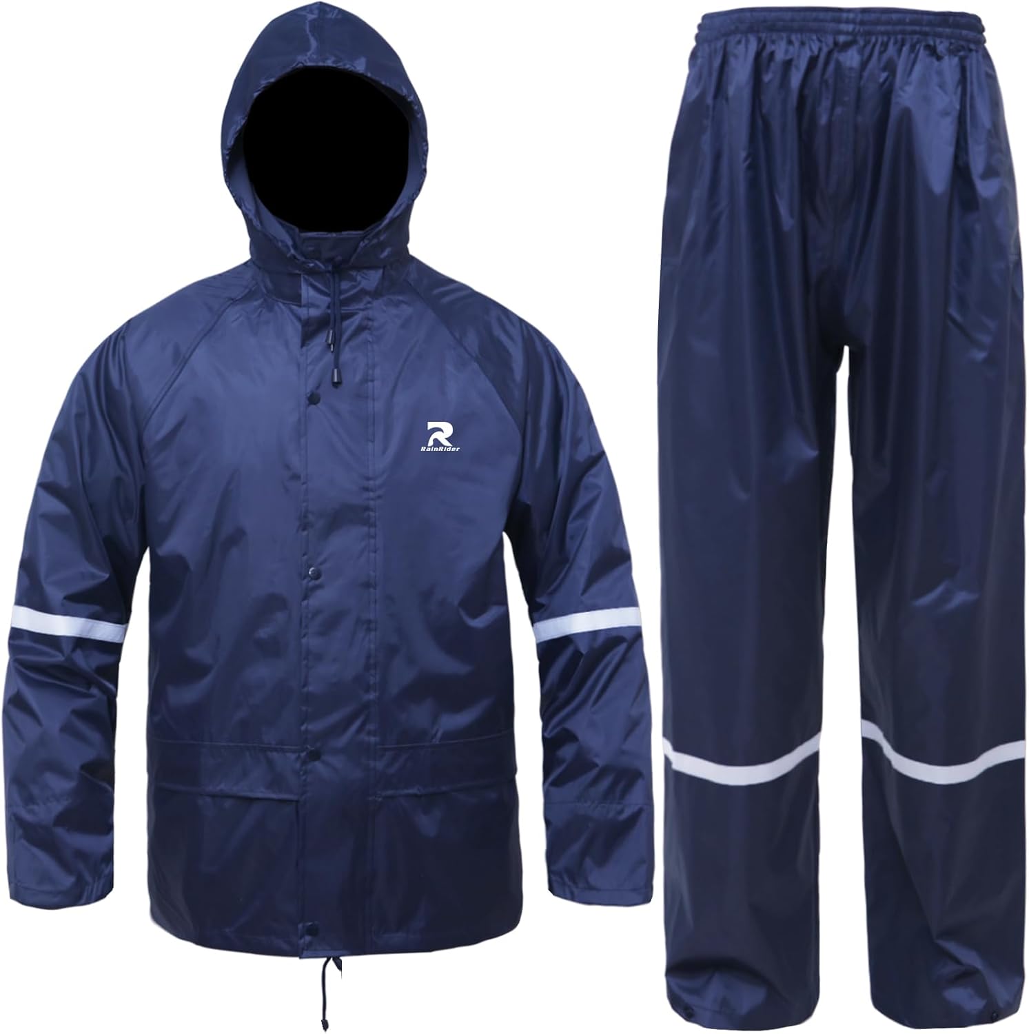 RainRider Rain Suits Safety Rain Jacket with Pants High Visibility Reflective Rain Gear