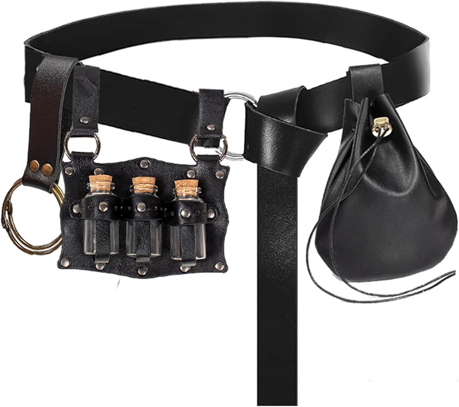 - Versatile Accessory: This set includes a leather belt pouch, fanny pack, and potion bottles for a complete Renaissance costume look.Multipurpose Use: Ideal for cosplay, costume parties, or even outdoor activities like hiking.