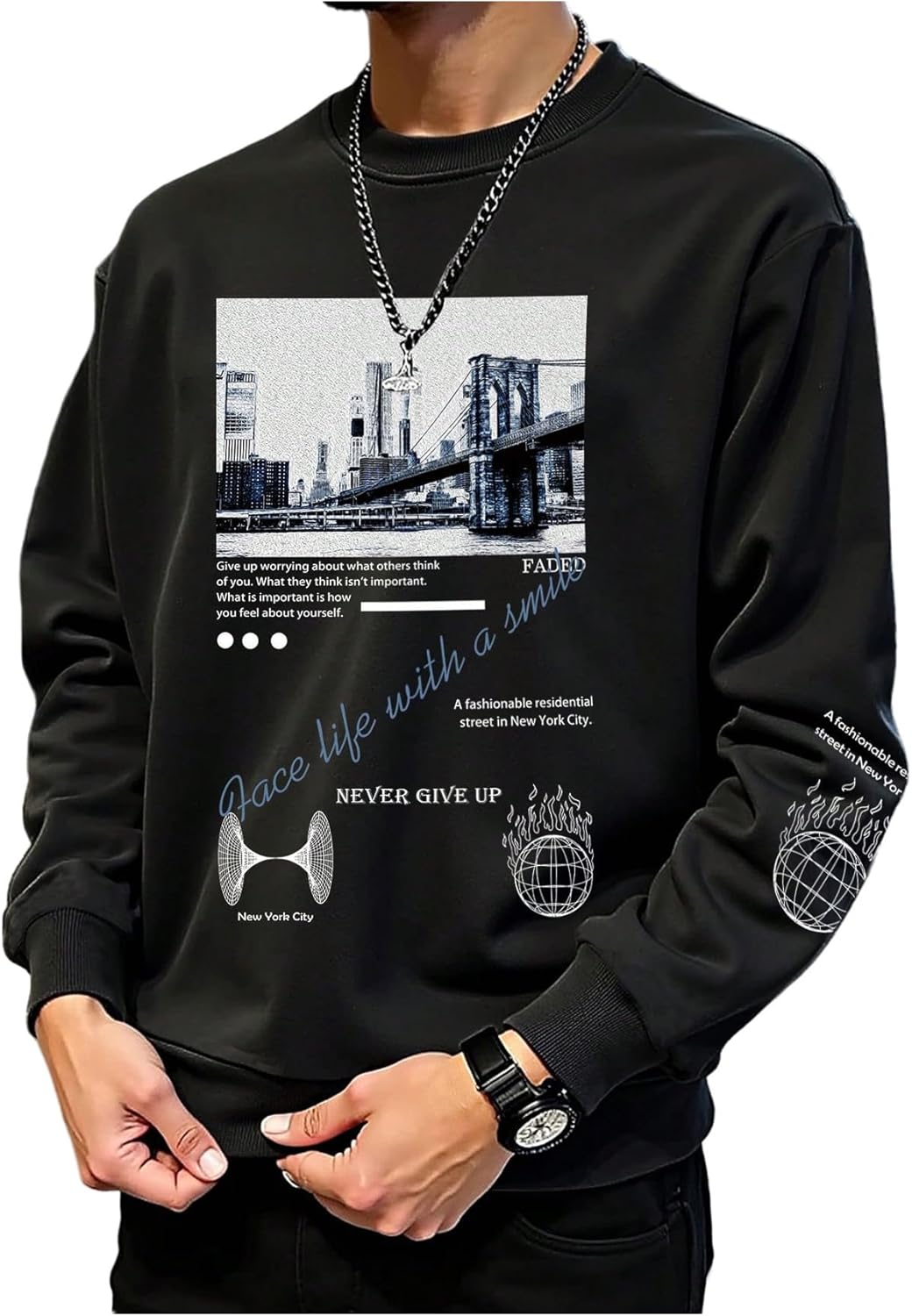 SOLY HUX Sweatshirts for Men Letter Graphic Crew Neck Long Sleeve Drop Shoulder Pullover Top