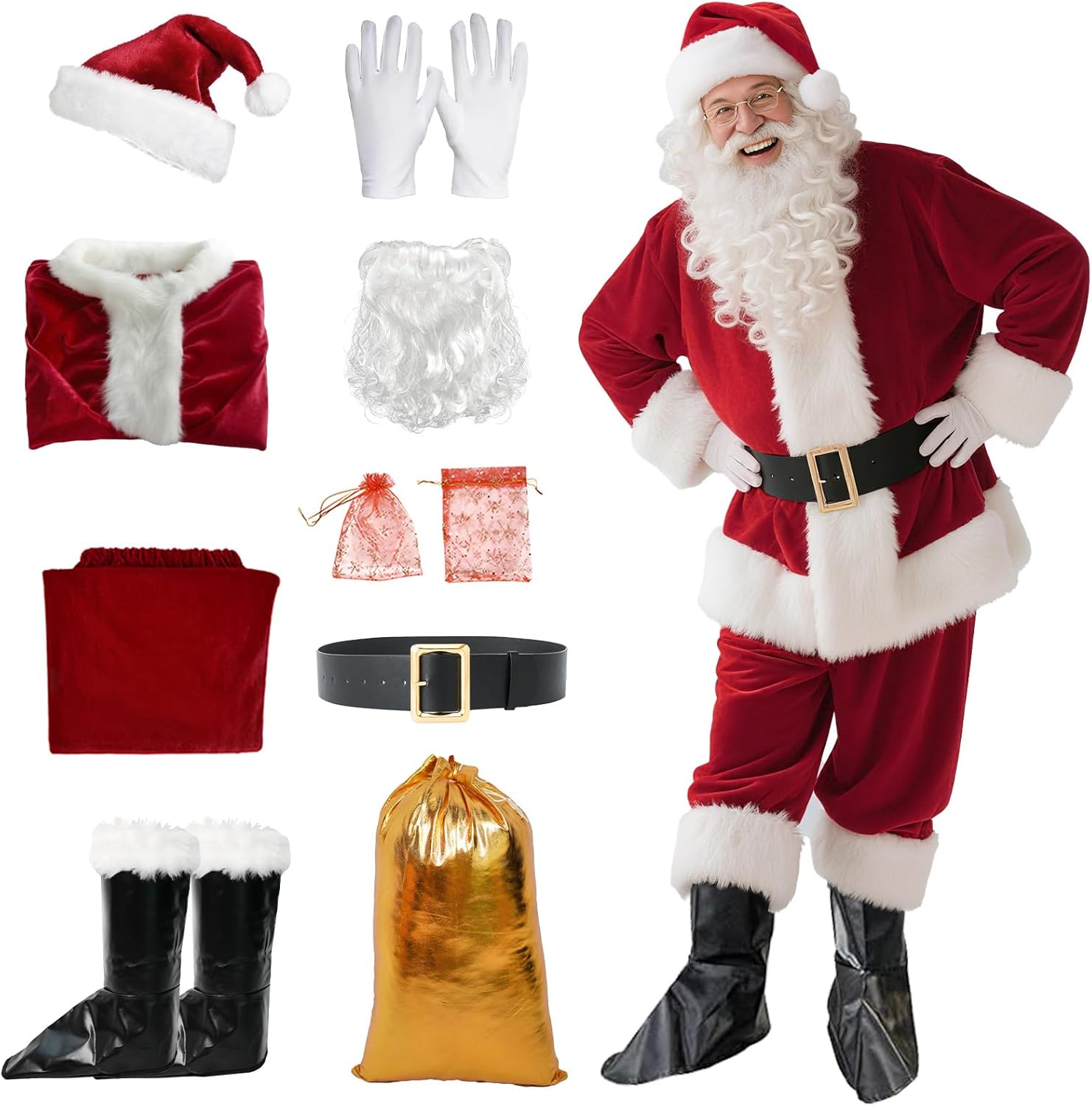Santa Claus Costume for Men 10PCS Santa Costume Adult Men, Deluxe Santa Suit for Christmas Parties