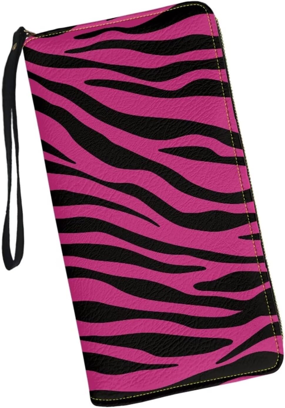 Long Wallet for Women Wristlet PU Leather Card Holder Large Capacity Cell Phone Zip Around Clutch Purse with Wristlet Strap Stylish Pink Zebra Stripe Print Dating,Travel,Shopping Money Pocket