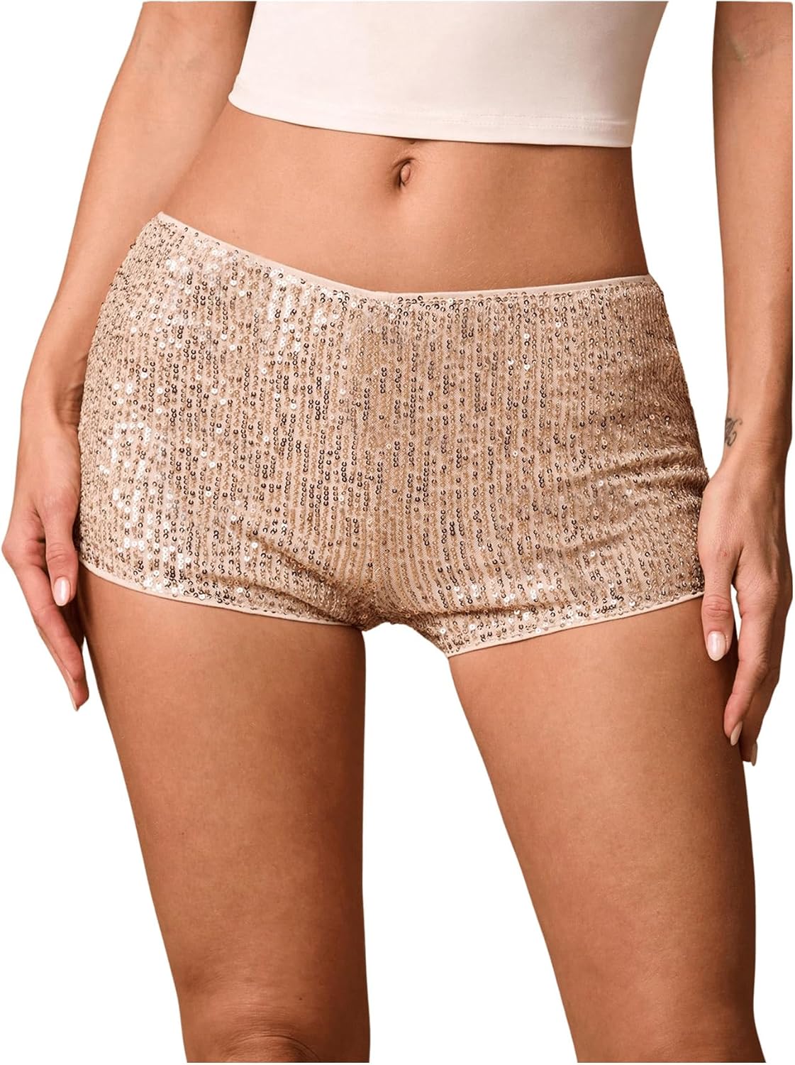SHENHE Women's Sparkly Sequin Shorts Sexy Low Rise Y2k Party Rave Hot Pants Booty Shorts