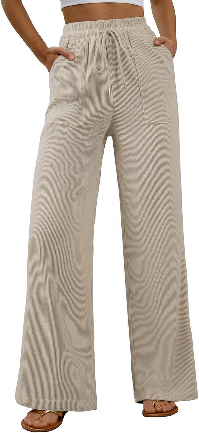 EVALESS Women Corduroy Pants Wide Leg Casual High Waisted Straight Leg Baggy Trousers