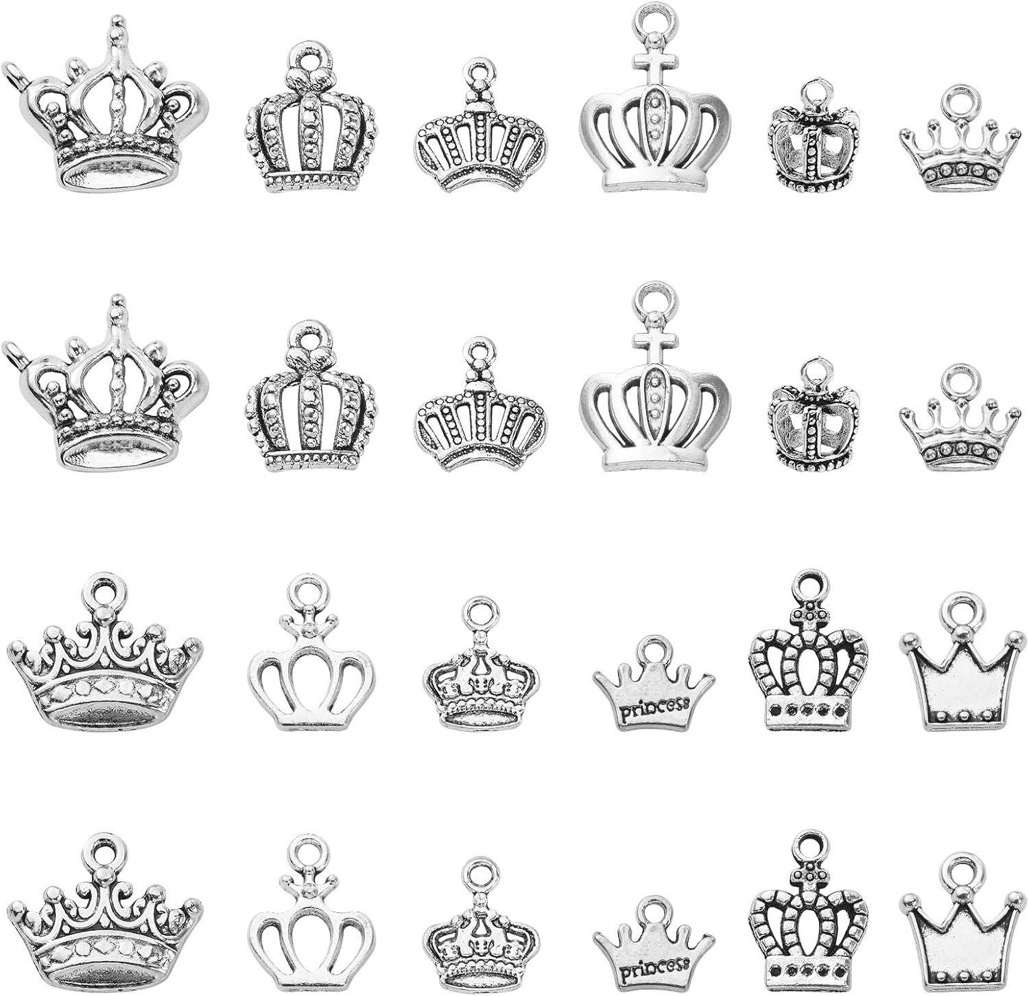 - 🌵Quantity and Size: You will receive 120pcs crown charms in total, 12 styles, 10pcs per style. Each charm is about 12-19.5mm in long, 10-19.5mm in wide, 2-12mm in thickness, 2mm in hole size. (1 inch = 25.4mm or 1mm = 0.0393 inch).