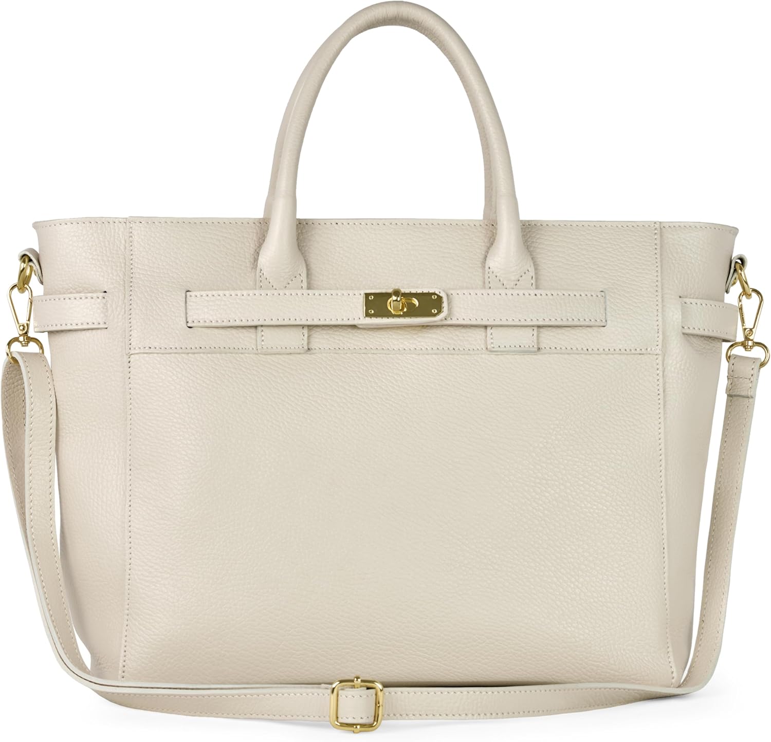 Italian Genuine Calf Leather Handbag for Women with Zipper & Adjustable Strap | Medium Top-Handle Satchel Purse