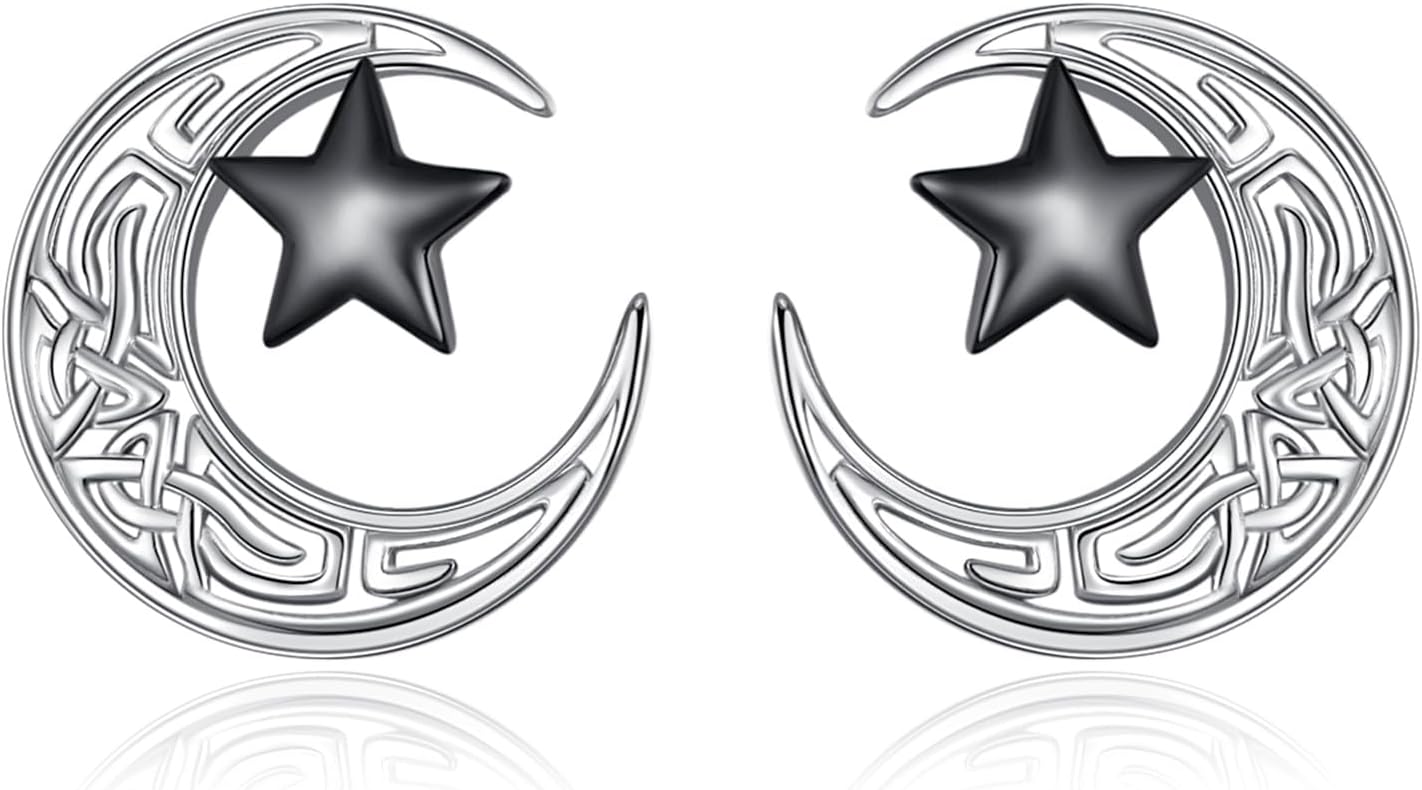 925 Sterling Silver Celtic Knot Studs Earrings with Black Crystal Jewelry for Women
