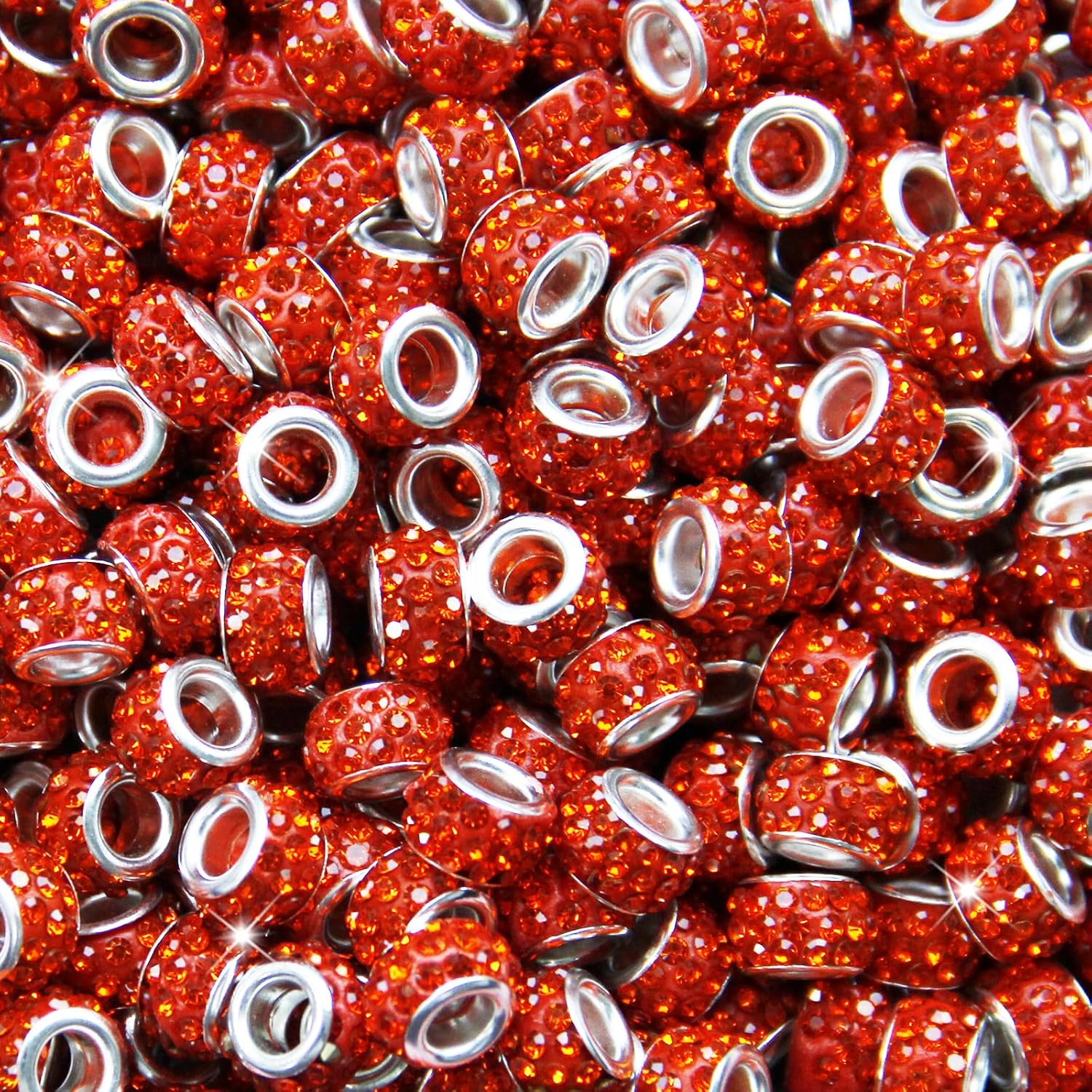 - 【What You Get ?】100pcs Orange Rhinestone Large Hole Beads .Our Rhinestones Large Hole Beads Are Stylish And Novel In Design. Make Your Diy Jewelry Work Stand Out. Size:12mm large hole rhinestone European beads 7 mm in thickness, the hole is approx. 5 mm. Enough quantity for you to use and replace them at daily life.